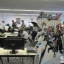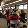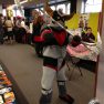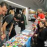 Comme nous n’étions que 2 derrière le stand cette année, nous avons assez peu vu la convention au niveau activités/animations. Cependant, le public semblait participatif et enthousiaste, s’arrêtant facilement aux différents stands et parlant facilement avec les vendeurs. La journée du samedi a commencé assez mollement, et est montée crescendo au fur et à mesure de la journée ; entrecoupée de grosses batailles de kinder surprise et d’avions en papier entre stands ! Les stands s’en sont mis plein la tête, les visiteurs ont payé les pots cassés de nos gue-guerres, un joyeux boxon général ! La journée du dimanche a par contre été plus mitigée : peu de visiteurs dû au cosplay. Mais au final, un bon moment puisque cela permet de discuter entre stands et organisateurs. Une anecdote amusante aussi d’une visiteuse : une jeune demoiselle a été collée 4h en se faisant chopper à lire un de nos fanzines durant ses cours !
