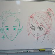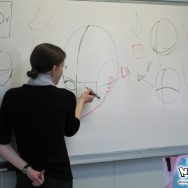 Point commun à tous les ateliers : la difficulté de faire un cercle bien rond ! Passé ça, nous avons donc entamé le visage de trois quarts ; il n’y a pas eu de difficultés majeures, les participants assimilaient plutôt bien les explications. Par contre, le niveau semblait plus égal cette fois-ci…