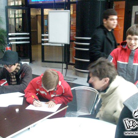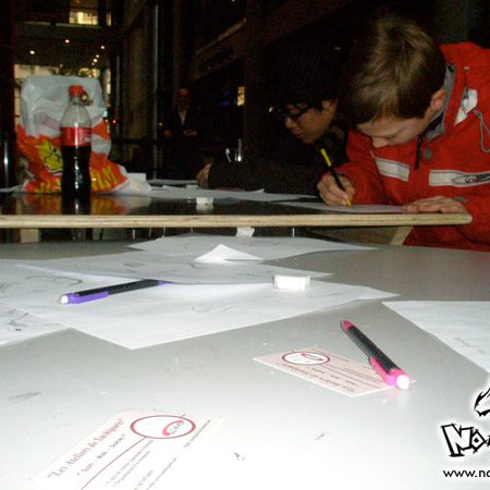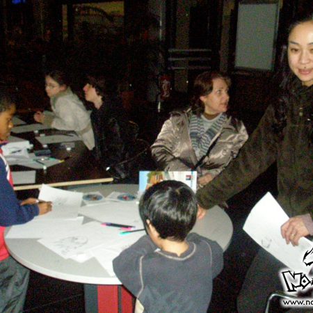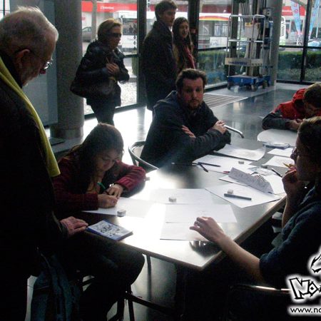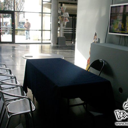 Deuxième session pour notre atelier manga à Boulogne-Billancourt lors du festival High Score 5 à l’espace Landowski. Il y a eu plus de participants que le samedi précédent ; l’installation des tables dans la nef a attiré beaucoup plus de monde. Les principaux participants étaient des enfants, mais nous avons eu également quelques adultes. Le festival a lui aussi semble-t-il attiré plus de monde que le samedi précédent.