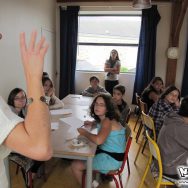 Après le premier exercice, 3 jeunes filles sont sorties du lot et nous avons fait un groupe un peu plus avancé à part, dont Kômori s’est occupée en leur apprenant le 3/4. SuzieSuzy et San Lee ont assuré le cours débutant au reste des participants. L’atelier s’est terminé à 17h, et les enfants ont du malheureusement partir sous la pluie !