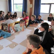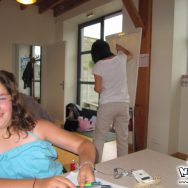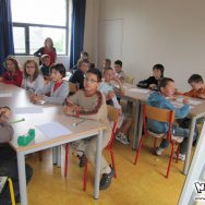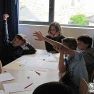 Cet atelier faisait participer les enfants de La Chapelle-Launay, de Prinquiau, et de Campbon, où nous avions déjà fait un atelier en juillet 2010. Après un léger retard, les enfants sont tous arrivés en même temps vu qu’un bus les déposaient ! Il y a eu au total 25 participants en comptant les animatrices ; pile le nombre de chaises !