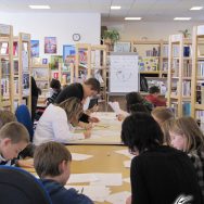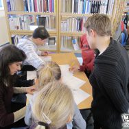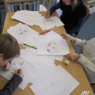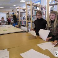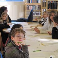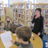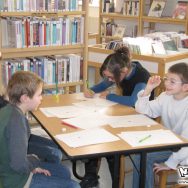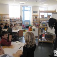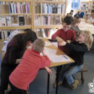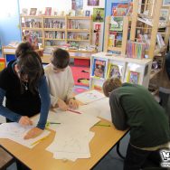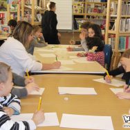 Cet atelier d’une demie-journée, destiné à un niveau débutant s’est révélé des plus dynamiques, avec des jeunes exclusivement de primaire, qui se connaissaient tous pour la plupart. Du travail pour nous : nous n’étions que deux ! Nos dessinateurs ont le don pour tomber malades en début d’année ! Donc des jeunes âgés de 6 à 10 ans environ, auxquels se sont joints leurs deux animatrices, un animateur stagiaire et la responsable de la bibliothèque. Mais après le rodage de Cosmopolis, ce n’est pas 22 participants qui vont nous faire peur !