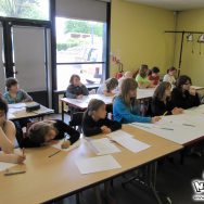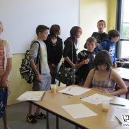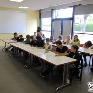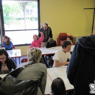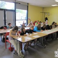 Du coup, l’atelier de l’après-midi, prévu à 14h, a repris à 13h30 au lieu de 14h. L’après-midi était consacré à la retranscription de leur histoire en story-board, un exercice plutôt difficile, et peut-être un peu trop élevé. Certains s’en sont toutefois très bien sortis, et ont pu rapidement passer leur one-shot au propre ! Malheureusement, aucun d’entre eux n’a eu le temps de finaliser sa planche, les horaires impartis étant un peu juste pour ce genre de travail assez complet. Pour la prochaine fois peut-être !