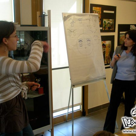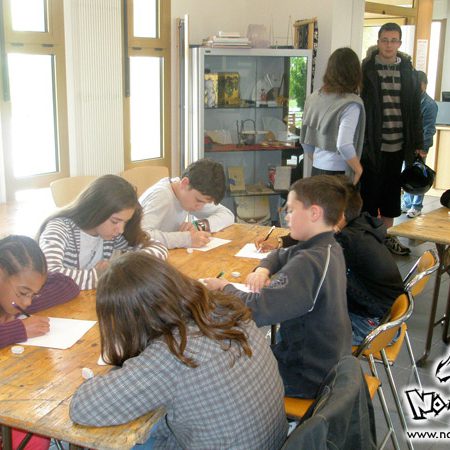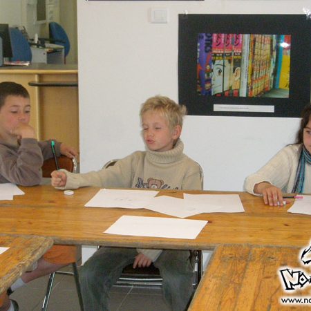 Premier atelier manga à l’ouest de Nantes pour No-Xice© ! Cet atelier était prévu depuis 2008, dans la bibliothèque municipale de la ville d’Herbignac. Arrivés à 9h30, l’accueil fut vraiment chaleureux. L’atelier a commencé le matin avec le groupe des plus jeunes, puis, après la pause de midi à la crêperie, le groupe des plus âgés, qui s’est montré très rapide et qui assimilait très vite nos explications. L’atelier de l’après-midi s’est terminé à 17h, avec une petite rallonge de temps pour les derniers. Au final, un très bon atelier dans un cadre agréable et des participants motivés et attentifs ! À renouveler !