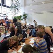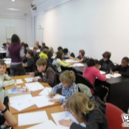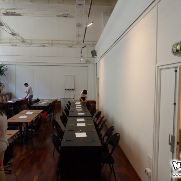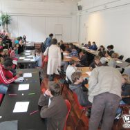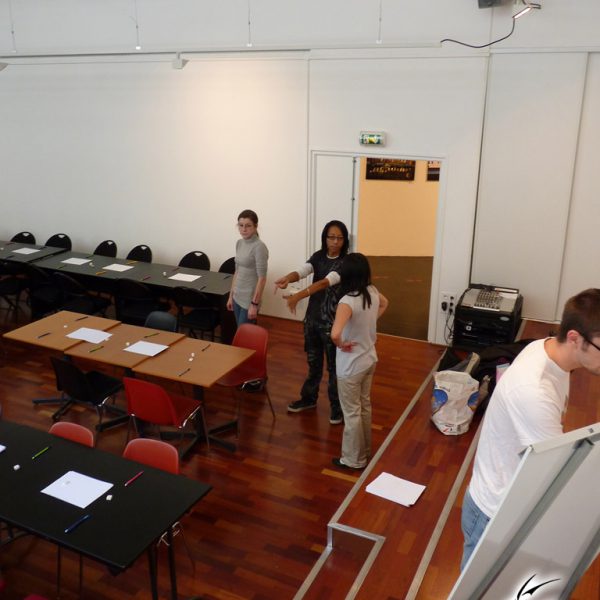 L’organisation s’est faite un peu comme d’habitude, avec le cours classique, la seule différence notable a été un second tableau à l’autre bout de la salle en miroir, pour que tous les participants puissent bien voir les dessins explicatifs. Cependant, c’est au niveau du soutien individualisé qu’une grande différence s’est faite sentir : nous avons dû être beaucoup plus rapide dans les explications ; même si, d’après les retours des gens, ils ont été très satisfaits de la prestation, de notre côté, nous avons eu l’impression d’aller un peu trop vite pour eux par rapport à d’habitude. Au début de l’atelier, un groupe de 13 personnes a été formé au niveau un peu plus conséquent ; nous en avons d’ailleurs gardé plusieurs dans nos contacts…