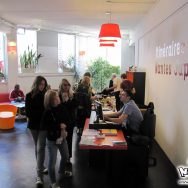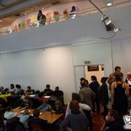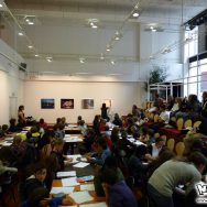 NB : message pour les gens qui ont voulu nous parler pendant où à la fin de l’atelier : nous nous excusons de ne pas avoir été plus disponibles, mais le timing assez serré ne nous en laissait pas le temps ; parmi les dessinateurs de l’atelier, certains devaient s’occuper de la régie technique pour la conférence qui suivait, et d’autres partir se changer pour le défilé. Si vous le souhaitez, vous pouvez toujours nous écrire par mail, nous répondrons à toutes vos questions !