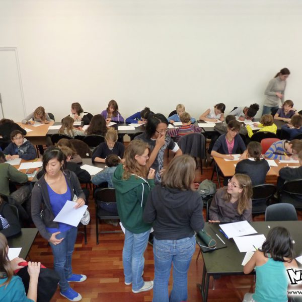 Ce nouvel atelier manga a eu lieu dans le cadre du festival Itinéraires Nantes Japon organisé par l’espace Cosmopolis de la ville de Nantes. C’est aussi le plus gros atelier débutant que l’on ait eu a géré ! Habituellement, nos groupes sont plutôt de 20 participants, cette fois, nous en avions… 70 !