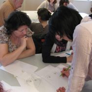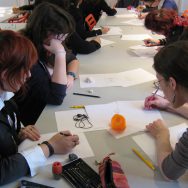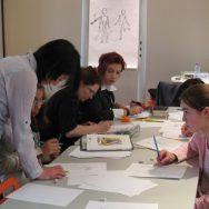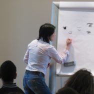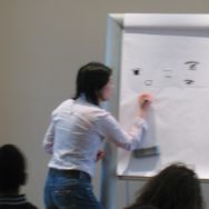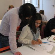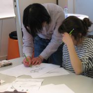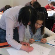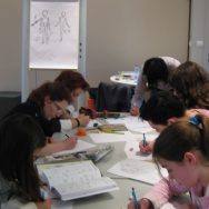 La deuxième session a eu lieu de 14h30 à 16h30, réservée aussi à un public de 13 ans et plus, niveau intermédiaire. Nous avions retrouvé des participants de l’atelier du 7 mars et du matin-même ! La moyenne d’âge des 16 participants était plus jeune, deux fois moins d’adultes étant de la partie. Nous avions un bon niveau de dessin mais scindé en deux niveaux homogènes. Pour le bon déroulement de l’atelier, les participants ont donc été répartis en deux groupes : l’étude du visage 3/4 avec Kômori et l’étude du corps avec SuzieSuzy au tableau. L’ambiance était toute aussi studieuse mais plus détendue : en effet les bases étaient posées, les participants étaient libres d’expérimenter des poses et des styles, conseillés au cas par cas. Tous ont pu progresser, améliorer leurs méthodes et avoir un oeil plus critique envers leurs dessins. Cet atelier aussi s’était terminé plus tard, vers 17h00 !