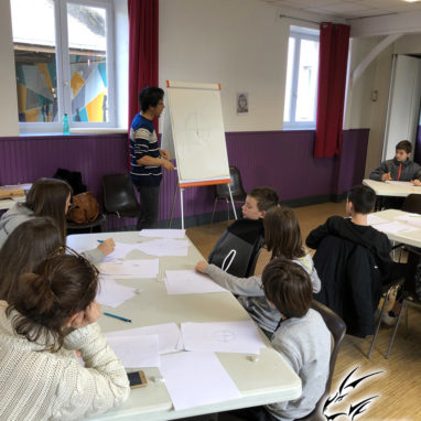 Cette fois, c’est Kômori et San Lee qui ont animé cet atelier. Le matin pour les 8-11 ans et 12 ans et plus l’après-midi.