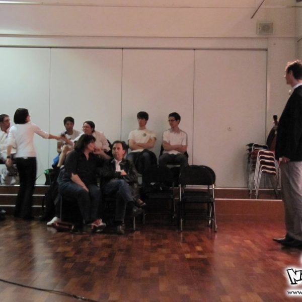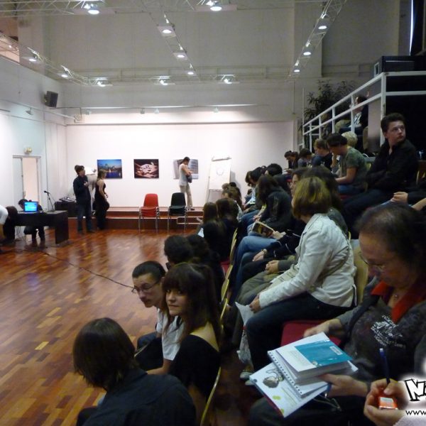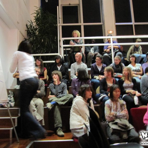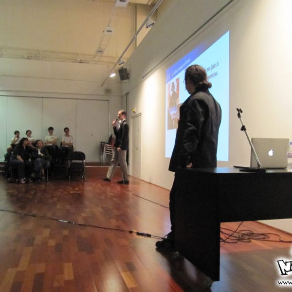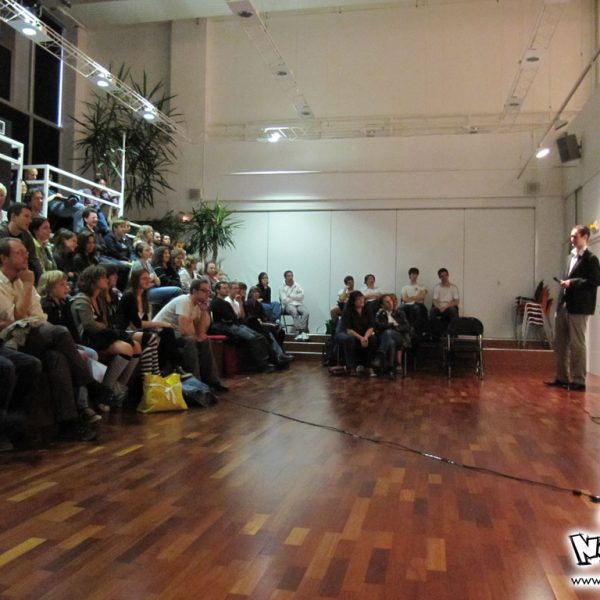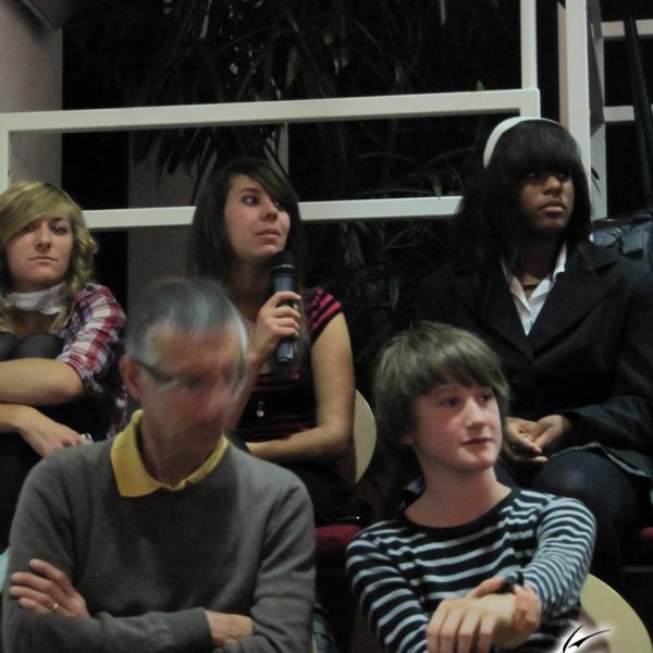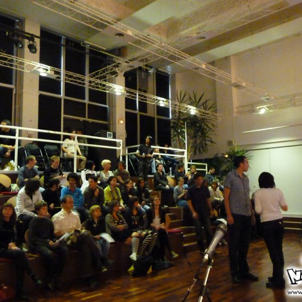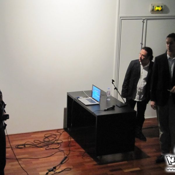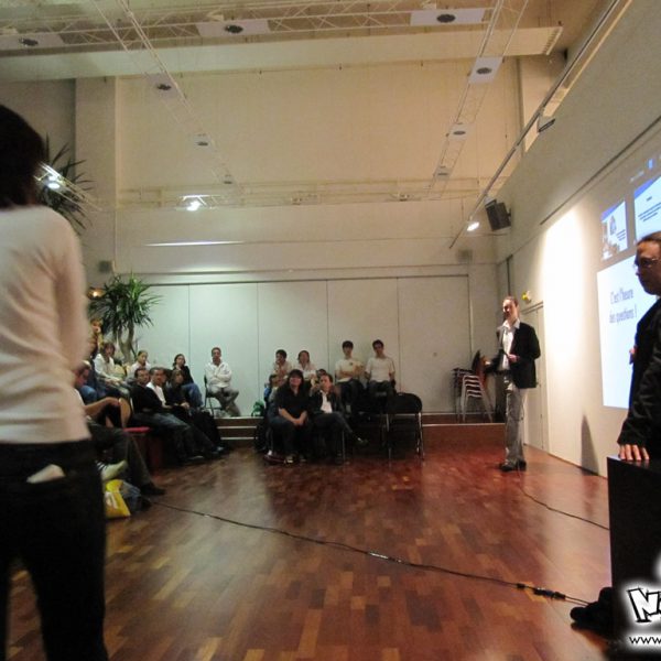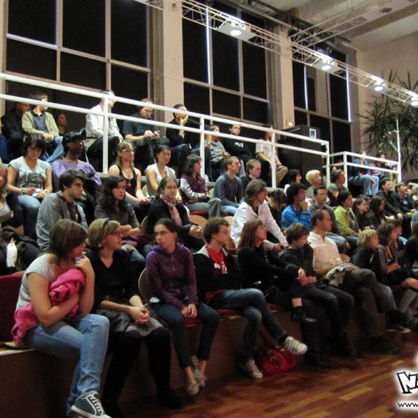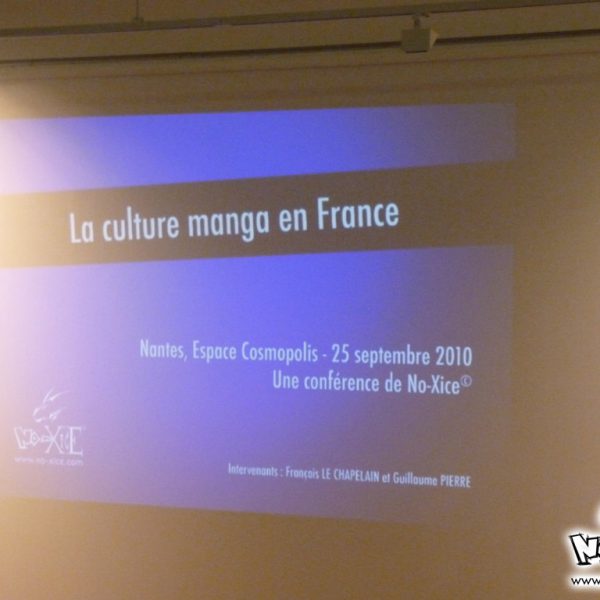 Le week-end manga du festival Cosmopolis, proposait, juste après l’atelier, une conférence animée par No-Xice© sur le thème “La culture manga en France”. Celle-ci fut présentée par Torog et Guigw ; environ une centaine de personnes s’étaient installées dans les gradins.