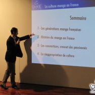 La conférence a commencé par une explication des différentes générations du manga, suivie de l’explication du comportement, de la naissance des conventions manga, et enfin, comment la France s’est réappropriée la culture populaire japonaise. Le public avait l’air plutôt intéressé, et les questions en fin de conférence ont dû être arrêtées par manque de temps.
