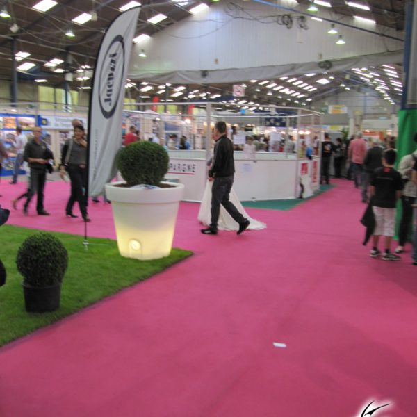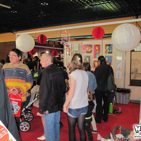 Ce hall 7 justement, qui nous a particulièrement impressionné : la totalité des stands étaient des reproductions de petits temples à la japonaise ! Un mini-pont, un mini-jardin zen, une exposition très bien renseignée, et pas de bêtes A3 affichés sur un panneau, il s’agissait là d’affiches imprimées sur 3 mètres de haut ! Une ambiance tamisée avec des couleurs rouge et ocres… Bref, la meilleure déco qu’on n’ait jamais vu ! Même dans les salons spécialisés “culture japonaise”, un tel niveau n’a jamais été atteint ! Chapeau bas à la Foire-Expo pour ce hall en tout cas !