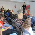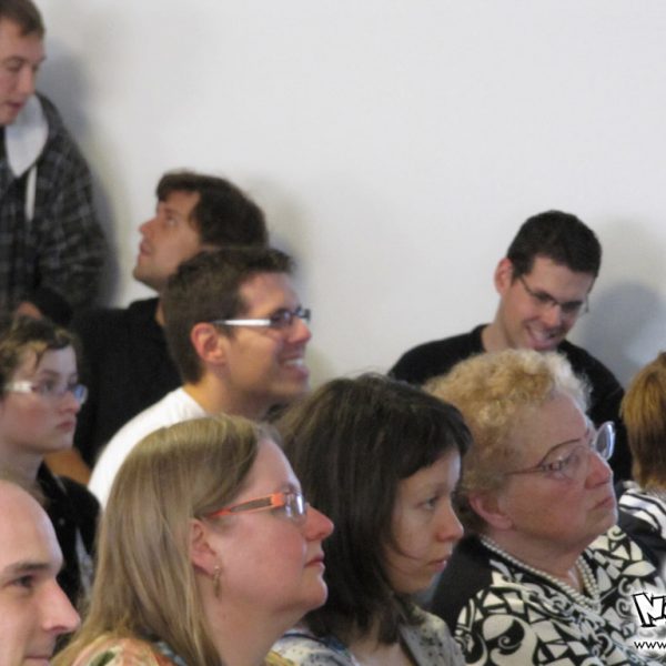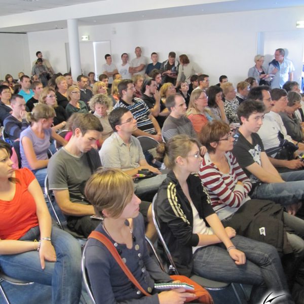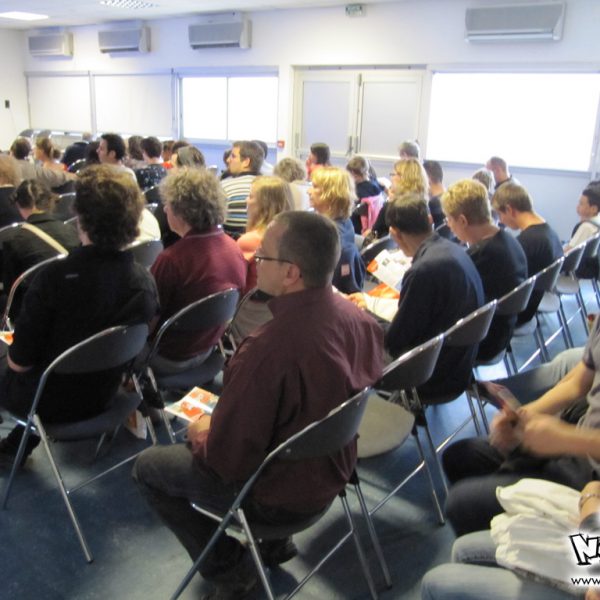 L’entrée assez facile dans la Foire-Expo nous a donné le ton : arrivés dans la salle de conférence, les chaises étaient prêtes, ainsi que les micros, qui étaient déjà branchés, et le son réglé. Le technicien est arrivé très vite pour installer le vidéo-projecteur. L’organisation a été en tout point irréprochable !