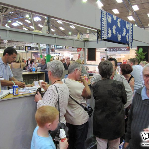 Après la conférence, nous sommes donc allés faire un tour dans la Foire-Expo. Un mot : impressionnant ! Pas moins de 7 halls avec toute une partie en extérieur en plus, et le nombre de visiteurs qui va avec ! On trouvait de tout ! Un stand de nourriture japonaise en face du stand de la Police Nationale, des stands d’enduit monocouche à côté de de jeux en extérieur pour enfants, des tondeuses à gazon à côté… Du hall 7, là où se situaient les stands “manga” !