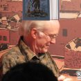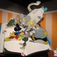 À notre arrivée donc, après l’achat des billets, nous regardons un peu le plan et San Lee et Torog tiquent immédiatement sur le fait qu’il y a une bulle “Mickey et Donald”. Une visite là-bas s’impose donc. Sans compter que la rumeur de la présence de Don Rosa n’a pas été confirmée… Pas manqué ; d’abord : l’exposition est une merveille ! On a rarement vu une exposition de meilleure qualité ! En plus de l’historique chronologique des BD de Mickey et Donald, la bulle est agrémentée de reproduction d’éléments des BD taille réelle, comme le bureau de travail de Walt Disney, le bureau de Picsou avec les différents éléments de sa jeunesse, des jeux d’ombre avec des spots, des tableaux avec des illustrations inédites, une salle de diffusion de la 1ère apparition télévisuelle de Donald, etc etc… Quand on compare aux expositions qu’on trouve au Japan Expo ou ailleurs, on sent qu’on est à Angoulême, à des années-lumières d’avance niveau qualité, que ce soit fond ou forme ! On découvre également dans cette bulle que Don Rosa est bien présent cette année, et qu’il est en dédicace aujourd’hui !