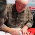 Puis visite de la bulle principale du champ de mars, la bulle où se trouve les éditeurs. Cette année, moins de place, donc pas de stand Soleil transformé en boîte de nuit. Après quelques achats (notamment 2 albums des Schtroumpfs pour San Lee évidemment…), San Lee et Torog commencent à faire la queue pour les dédicaces de Don Rosa. 2h45 plus tard, ils ressortent avec leur album dédicacé de la jeunesse de Picsou !