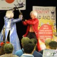 Le lancement du salon a malheureusement commencé par une conférence, à côté de la scène, dans la salle principale. Bien pour tuer d’entrée de jeu un semblant d’ambiance ! Ambiance complètement absente d’ailleurs, avec la diffusion de vidéos sans punch, et les speakers qui parlaient au micro sans aucune motivation dans la voix pour faire les annonces… La scène a également été complètement sous exploitée ; il ne se passait quasiment rien dessus, à part le cosplay, quelques jeux, des démonstrations de kendo et l’animation de Brigitte Lecordier, la doubleuse de Sangoku (enfant). La scène est donc restée au moins 50% du temps vide. Les staffs quant à eux étaient peu présents et passaient rarement aux stands.