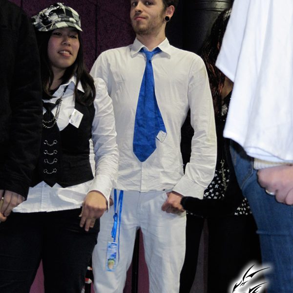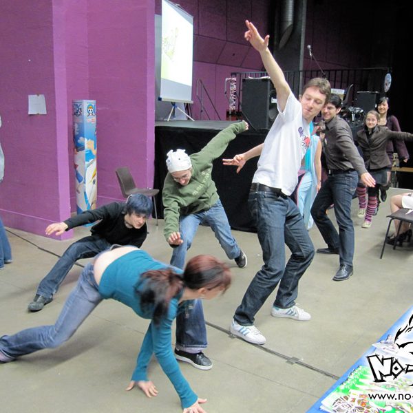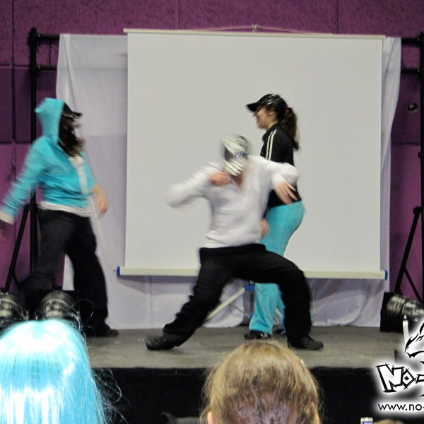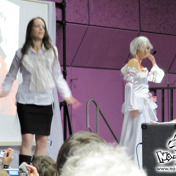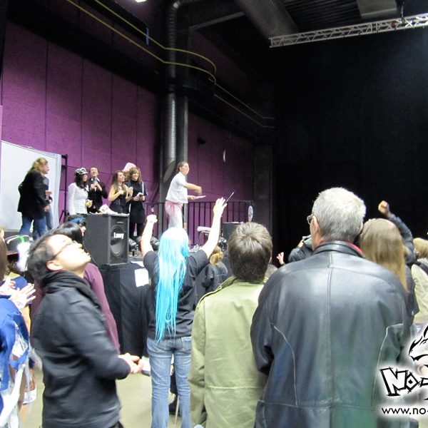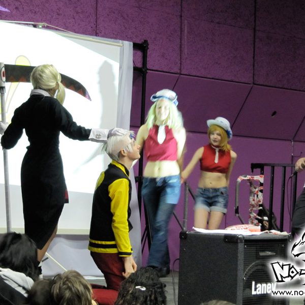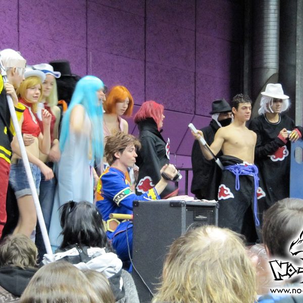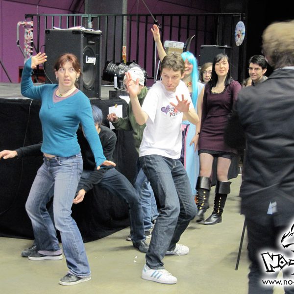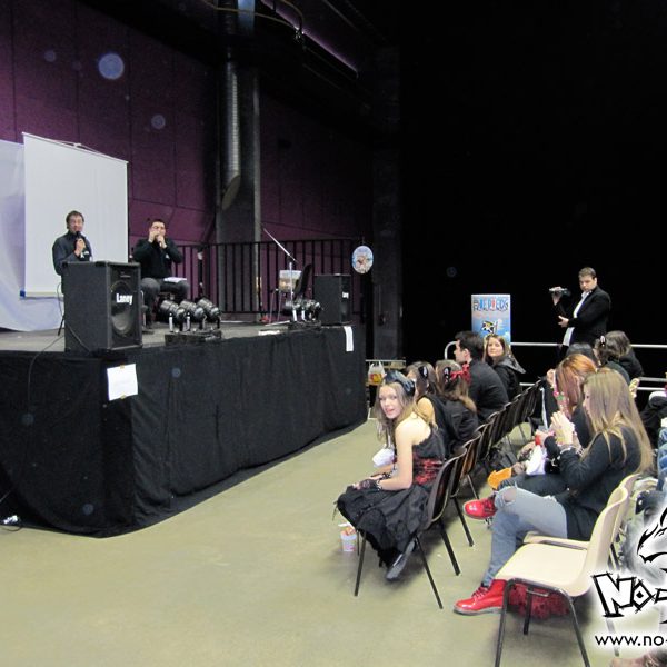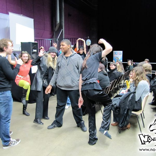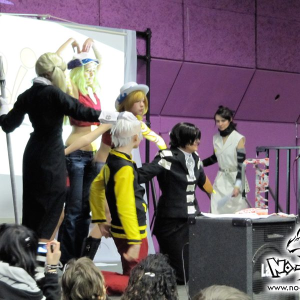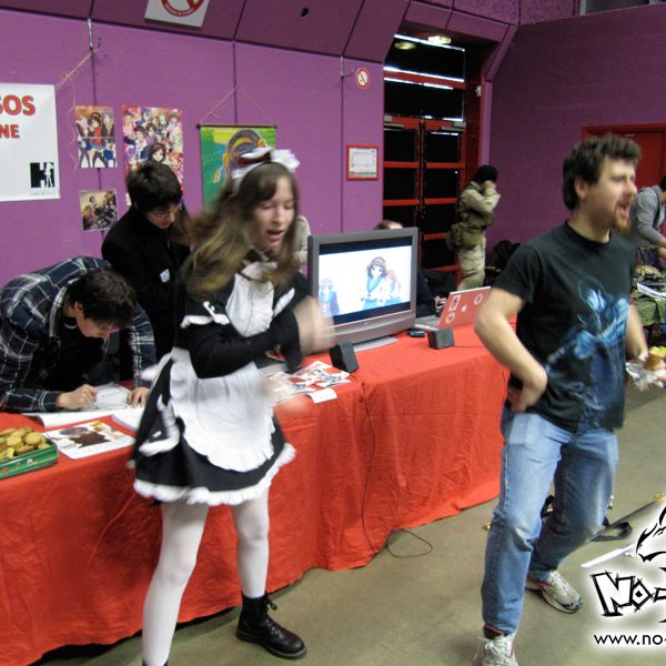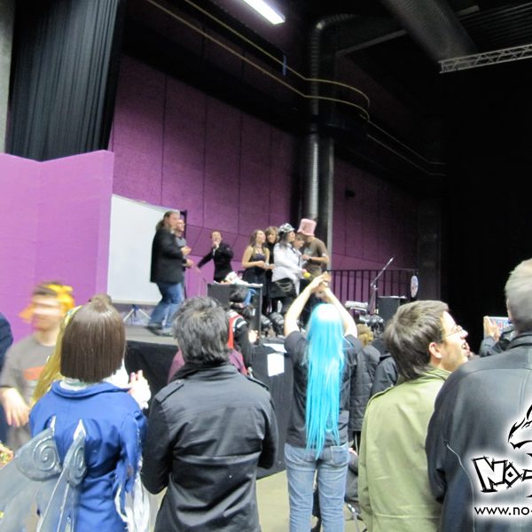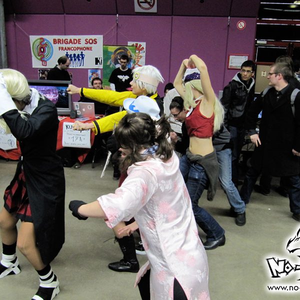 L’animation sur scène a été géré par Wazabi et Nantes no Otaku. Les animations du présentateur de Wazabi étaient comme à leur habitude (cf. galeries photo des soirées Wazabi), et NnO a assuré des conférences, mais le public n’avait pas l’air très captivé. Nno a également assuré la présentation du cosplay. Le cosplay qui s’est révélé particulièrement décevant ! Les costumes n’étant pas particulièrement mauvais, mais comme d’habitude, les prestations étaient complètement lamentables ; où même devrais-je dire : pas de prestations du tout ! Le cosplay s’est résumé, pour les participants solo, à parader en ne savant pas trop quoi faire sur scène, ou à la diffusion d’un texte enregistré inintéressant et ennuyeux au possible. Les cosplays groupe ne s’en sont pas mieux tirés avec l’éternelle petite musique débile et une petite danse aussi débile… On ne peut même plus appeler ça du cosplay, c’est juste du déguisement. Les seuls qui sont réellement sortis du lot au final sont Titi-chan du fanzine Eclectick, Papa Noël, qui, malgré son costume, a essayé d’être créatif dans sa prestation, et le groupe One Piece, même si ça sentait le réchauffé de ce qu’ils avaient fait à la soirée Wazabi 5, leur dynamisme comble ce défaut pour cette fois-ci. Au niveau des autres prestations scéniques, les shows des Tr4ks/PPA a beaucoup plu au public. Toutefois, le public était vraiment mou ; plus mou que le public parisien même !