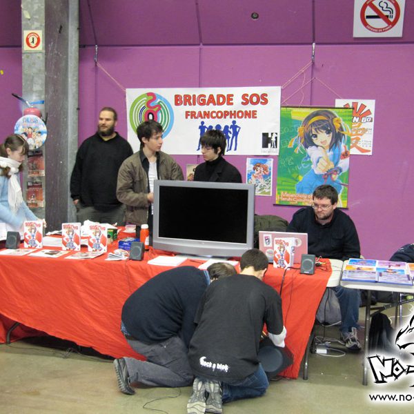 Au niveau jeux vidéos, beaucoup de variétés, aussi bien au niveau des jeux que des consoles, mais aussi par la présence de la salle de jeux Hadôken, une salle de jeux en réseaux sur XBox360 et PS3, et la boutique Gamer’s. Les jeux vidéo oldies ont parfaitement été gérés par Chok-Late, très actif alors qu’il ne faisait même pas parti de l’organisation au départ, avec un concours de Mario Bros 1 et 3 ; on pouvait trouver une Megadrive, des Nes, une Nintendo 64, une SuperNes, et même cet horrible jeu : le beat them all Sailor Moon ! Les jeux next-gen, Wii et musicaux étaient par contre réunis du même côté, dans un petit carré de 20m2. Faire tourner en même temps Tekken 6, DDR et Smash Bros est une méthode très efficace pour remplir l’endroit en moins de deux minutes et mourir étouffé ! Quoiqu’il en soit, cette partie des jeux vidéo a tout de même été très bien géré par Rirox, qui a également organisé des tournois Smash Bros très fun, notamment celui du dimanche, en équipe, mais avec partenaire au hasard ! Dommage par contre qu’il manquait deux manettes de Game Cube pour le tournoi Smash Bros ; malgré les remarques des joueurs, je pense que personne n’en tiendra rigueur puisque ces tournois étaient pour le fun.