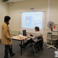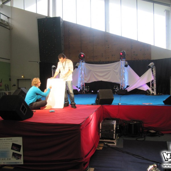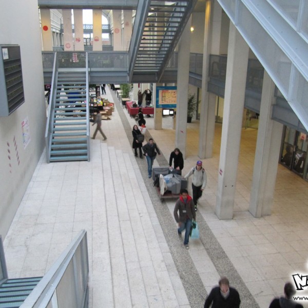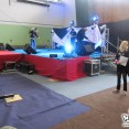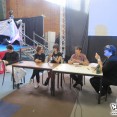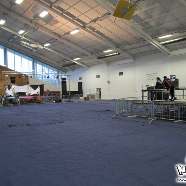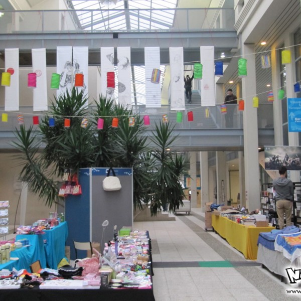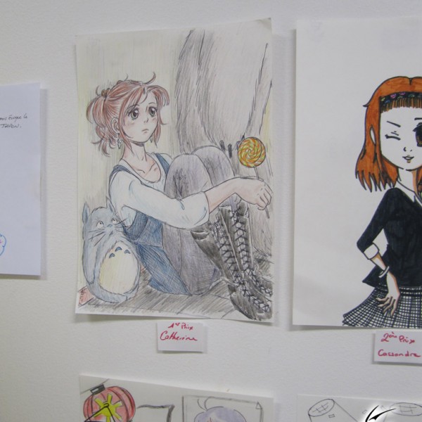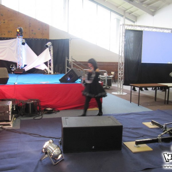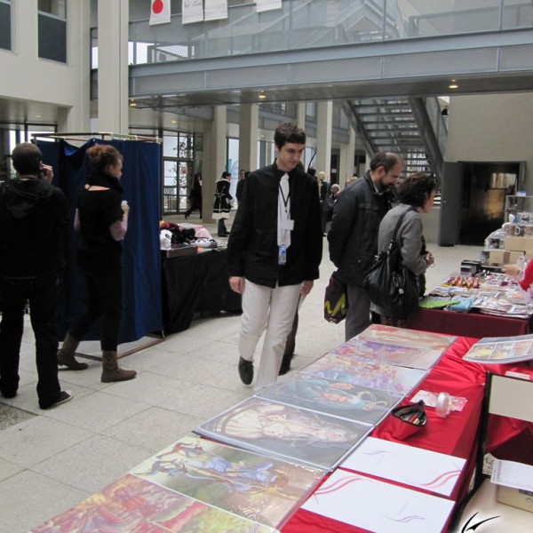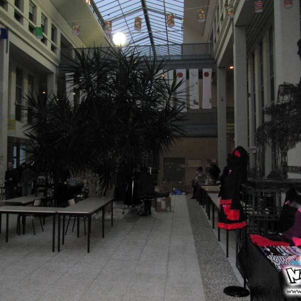 La salle étant l’école, le cadre a été plutôt particulier : tout en long, avec des escaliers pour accéder aux salles annexes. En soi, cette convention faisait d’une certaine manière penser aux Japanim Spirit qui avaient lieu à l’hippodrome de Nantes dans les années 2000. La salle était plutôt agréable, le plafond étant tout vitré ; mais le temps maussade n’a pas apporté une luminosité très satisfaisante…