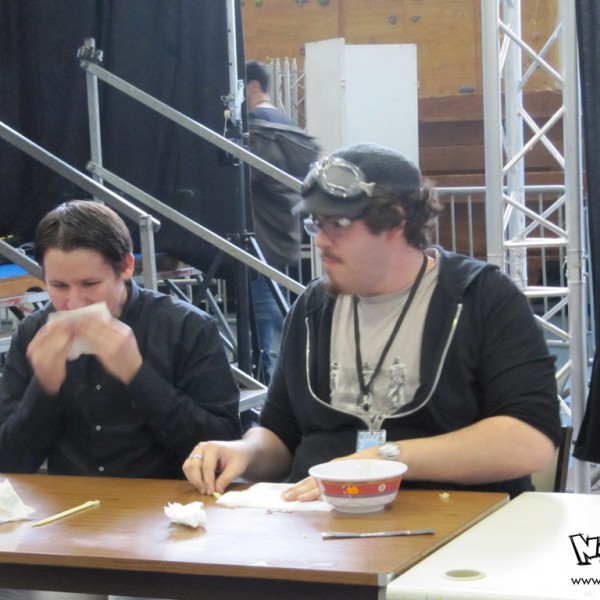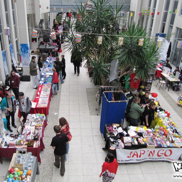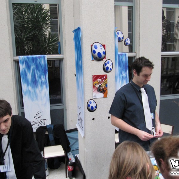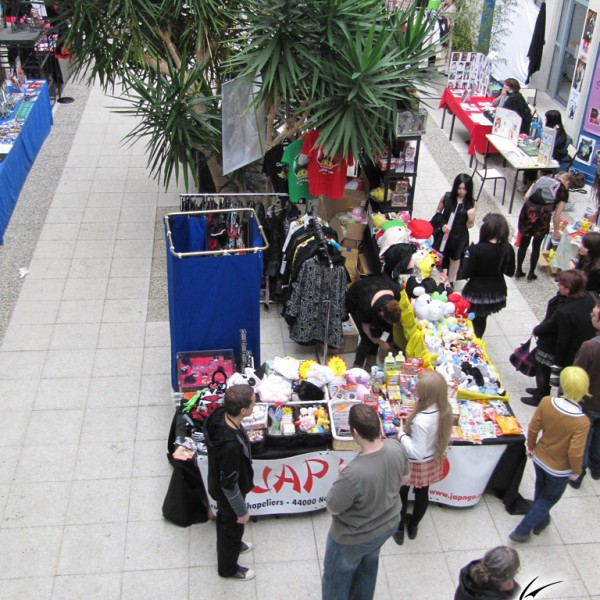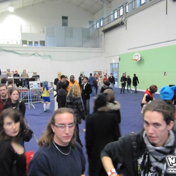 En faisant notre tour de convention, on remarque qu’elle est très complète : stands pro et amateur, salles d’animation, amphithéâtre, gymnase, salles de jeux vidéo, etc… Rien ne manque ! En passant des jeux musicaux à l’origami, à la salle de dessin, il y a de tout, et cette convention rassemblait tous les acteurs nantais du milieu manga ! Sans doute le point fort de JapaNantes ! Chapeau bas pour ça, car même dans certaines conventions plus grandes, on ne retrouve pas autant de chose ! Bon, allez, pour chipoter, il manquait toutefois du catch, une petite partie science-fiction/comics, et du sumo gonflable… Plus sérieusement, toutes ces différentes activités étaient dispatchées dans les différentes salles de l’étage ; cela avait pour avantage d’éviter les conflits de sons ; malheureusement, cela a également eu pour effet de dispatcher un peu trop les gens partout ; de ce fait, cela donnait l’impression que la salle principale était vide, et celle-ci ne proposant aucune animation, l’ambiance était particulièrement silencieuse. Il aurait sans doute fallu fermer une ou deux salles annexes pour les mettre directement dans la “rue” afin de mettre un fond d’ambiance sonore. Car à part des stands de vente, la salle principale ne proposait rien. L’autre problème majeur, indépendant de la volonté des organisateurs, était la localisation même de la salle, puisque celle-ci est à l’autre bout de Nantes, assez peu accessible si l’on n’a pas de voiture.