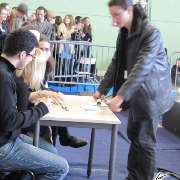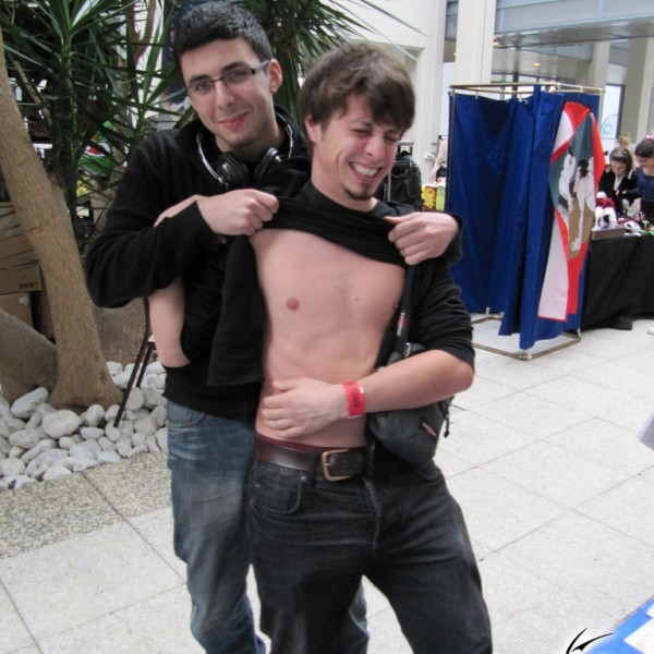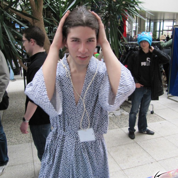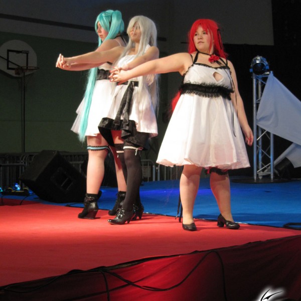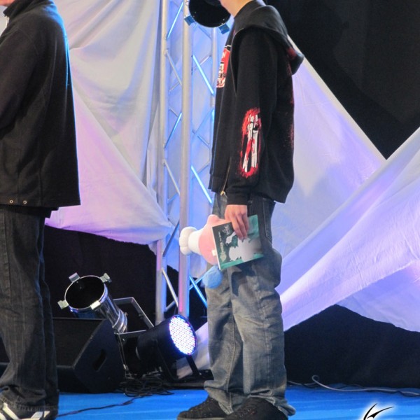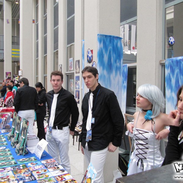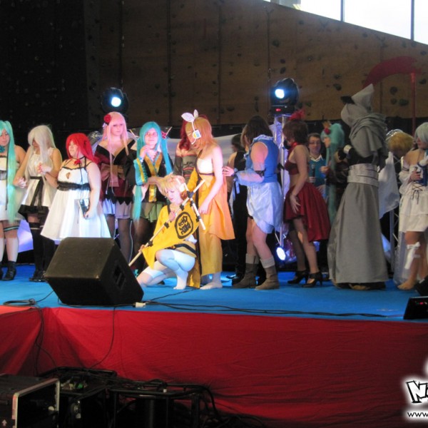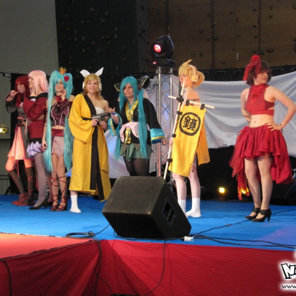 Niveau journée, le samedi a été particulièrement mou : les gens paraissaient peu enjoués, ils étaient assez bavards, mais pas très acheteurs. Le problème s’est vérifié auprès de tous les stands, pro ou amateur. Le dimanche a été nettement mieux, et la salle principale paraissait plus remplie déjà. Les gens étaient nettement plus motivés et participatifs, que ce soit pour faire les curieux auprès des stands que pour participer aux différentes activités. Le dimanche a donc été la grosse journée de JapaNantes, à cause notamment du cosplay. Le cosplay donc : et bien par rapport à Art to Play, du mieux ! Trois cosplays solo se sont distingués : la volonté de l’Abysse de Pandora Hearts, qui a gagné le 1er prix, le cosplay de Mär, très drôle, et le cosplay “Artwork n°37”, drôle mais un peu trop court. La palme de la prestation minable quant à elle revient au Cloud de FF7. Niveau cosplay groupe, du mieux aussi ! Le 1er prix a été décerné au groupe Pandora Hearts ; une victoire totale de ce manga donc ! Ils avaient rejoué les moments importants du manga, même si leur prestation a été quelque peu gâchée par des problèmes techniques. Le groupe de cosplayers de la West Blue a reçu un prix coup de coeur pour leur très bonne prestation Vocaloid, car une prestation relativement proche avait déjà été présentée à une autre convention par un autre groupe. Dans l’ensemble, un bon ré-haussage de niveau, notamment beaucoup plus de recherche pour les prestations, et peu de petites danses sans idée. Au niveau texte enregistré, le gymnase servant de salle d’animation principale, il n’y avait pas de conflit de son et on comprenait (à peu près)…