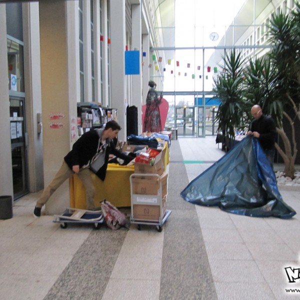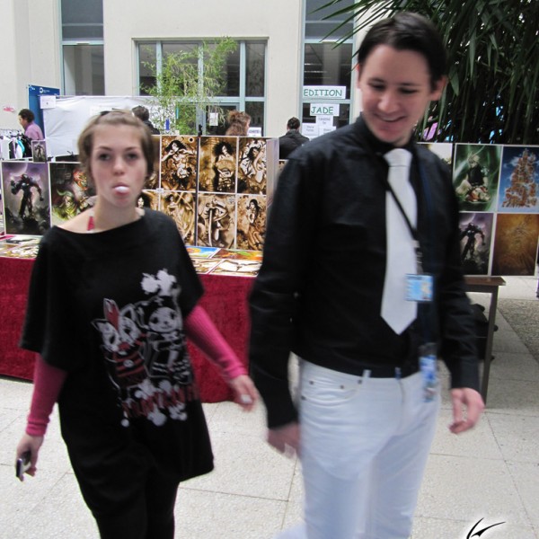 Nous sommes donc arrivés le samedi matin ; le parking étant quasi-vide, aucun problème d’accès ; cela dit, rien n’était indiqué sur le-dit parking, nous nous sommes donc garés du côté visiteur, et avons dû faire le tour à pied pour atteindre l’entrée exposant… À l’accueil, très simple et clair : on donne le nom de notre stand, on nous donne nos badges, et un staff nous amène à notre stand.