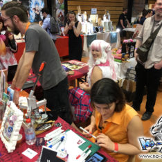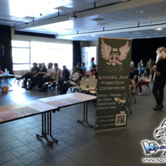 La convention en elle-même était plutôt bien agencée : des stands bien répartis, des salles annexes réservées aux associations d’animation ayant besoin de moins de bruit. Des tonnelles à l’extérieur pour la restauration. Seul point noir les stands qui était mis face aux vitres du fond de la salle, avec un rideau noir devant eux, cela faisait un peu “couloir de la mort”. Également : des jeux vidéo, mais pas de jeux musicaux, dommage.