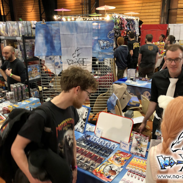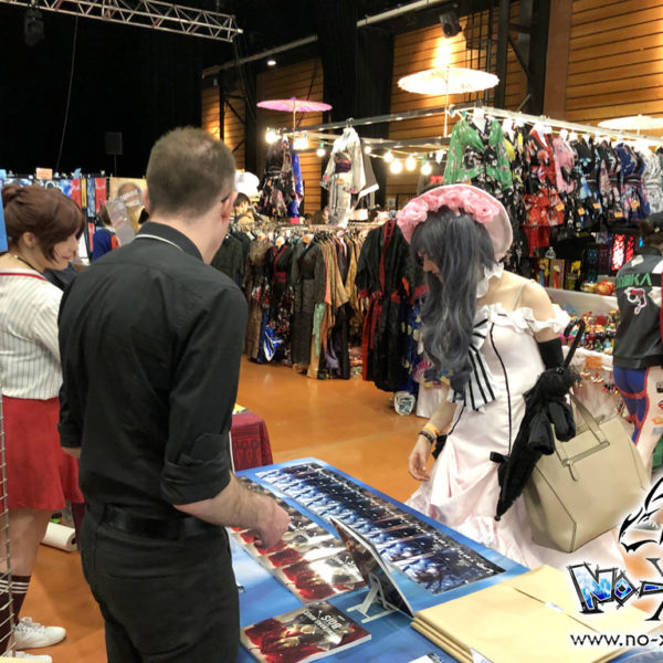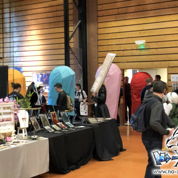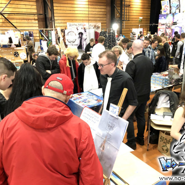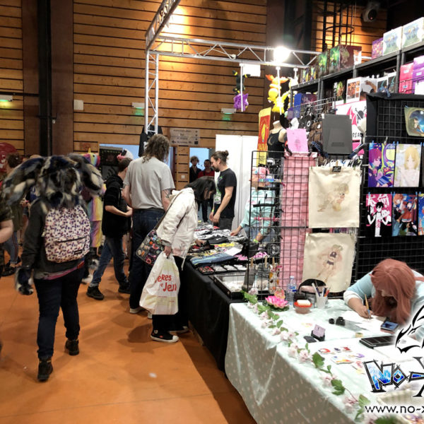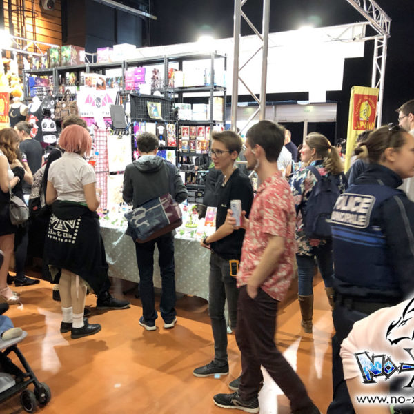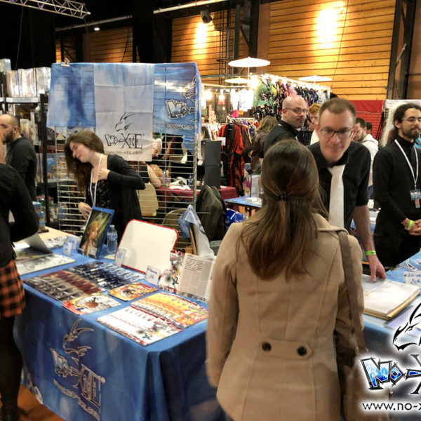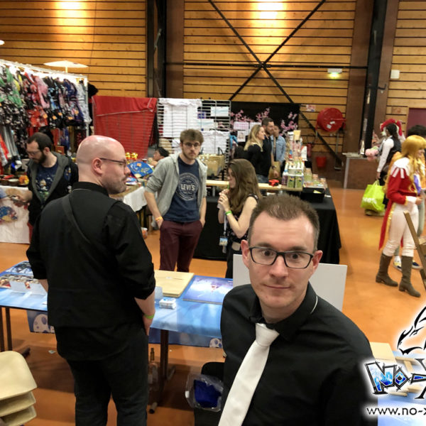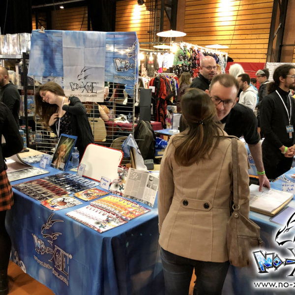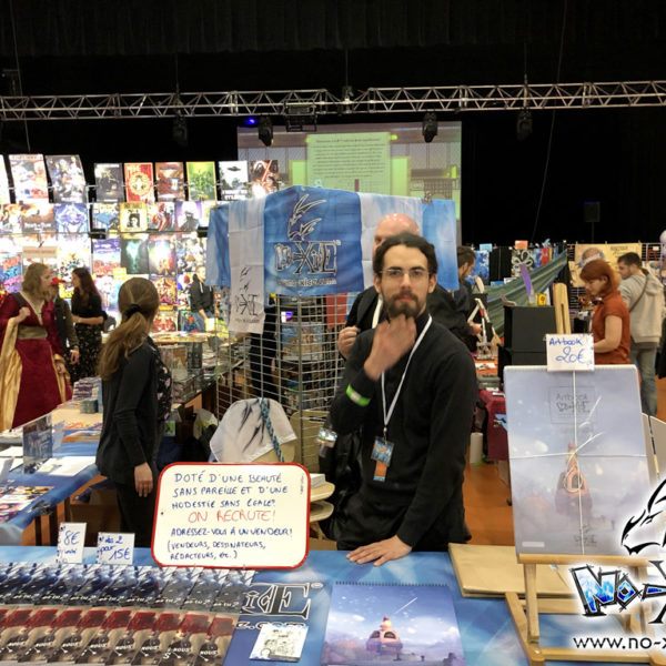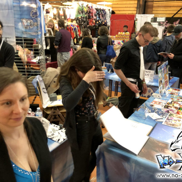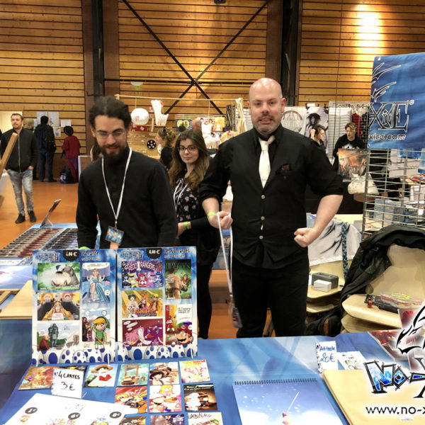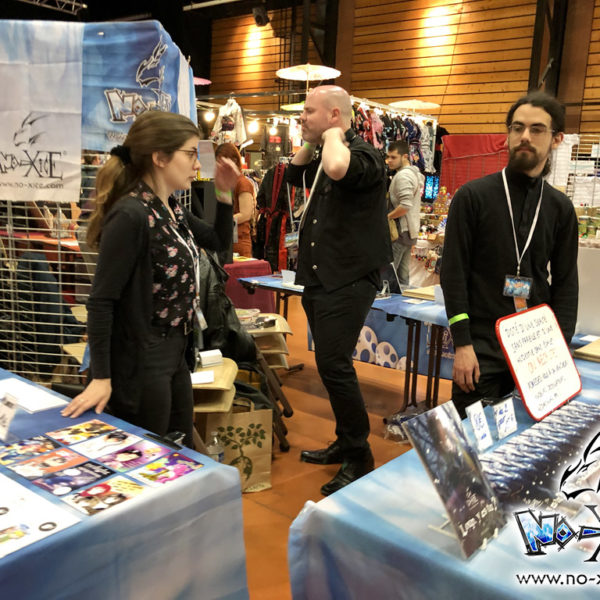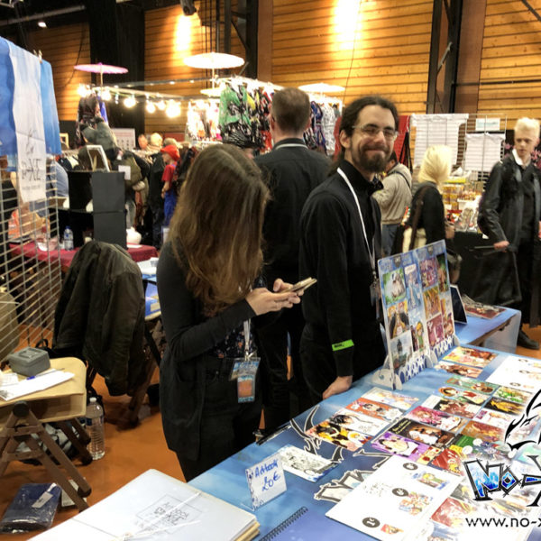 Cinq No-Xiciens étaient présents derrière le stand : San Lee, Kronk, Cheloux, Tsuki Hyouka et Zork, et mah tiLd’ qui est venue squatter le stand les deux jours. En plus de cela, il y avait à côté de nous sur le stand The Dreamcatchers Ayleen, Elairin et Ozz. Devant la scène, Evhell, et les boutiques nantaises connues en plein cœur du salon, comme Japanim ou Le Temple du Jeu. Cette année encore, nous étions partenaires, et avions un stand particulièrement bien placé, en plein milieu de la convention. Vous avez pu découvrir notre nouveau artbook au format A3 sur notre stand, ainsi que les deux mangas d’Elairin qui ont très bien marché !
