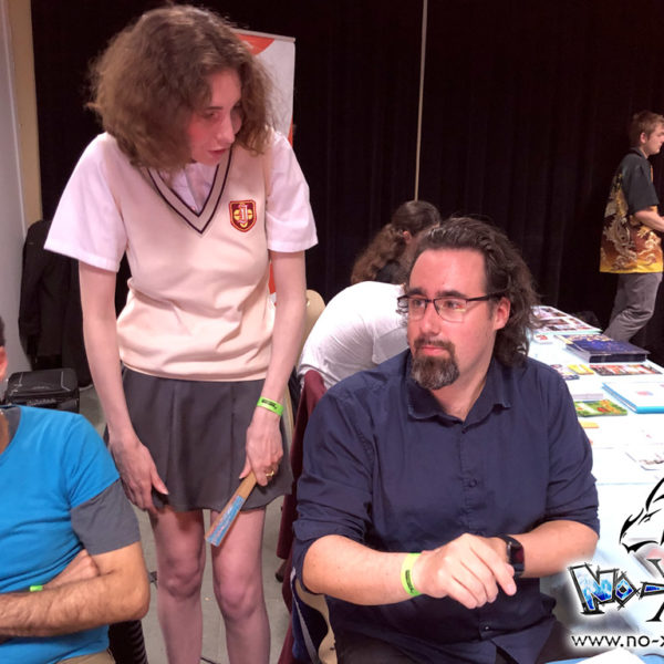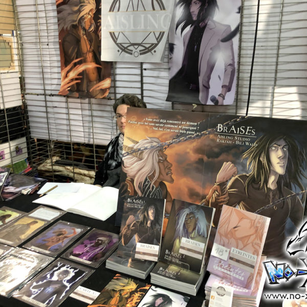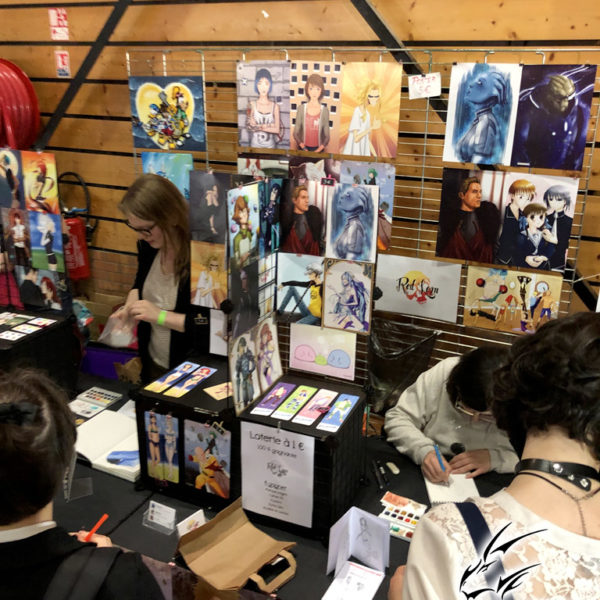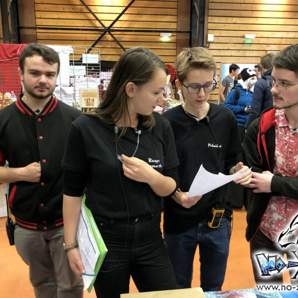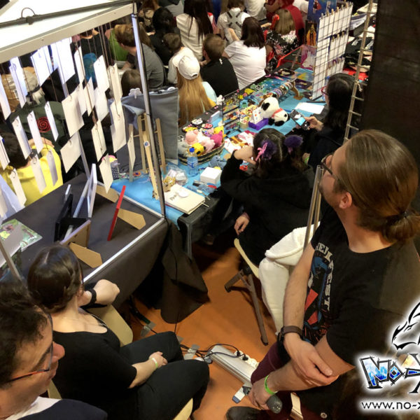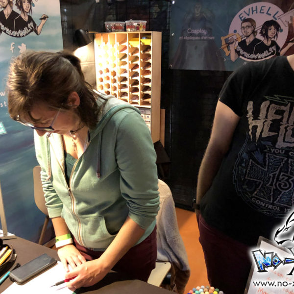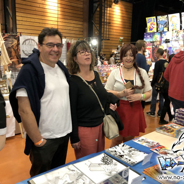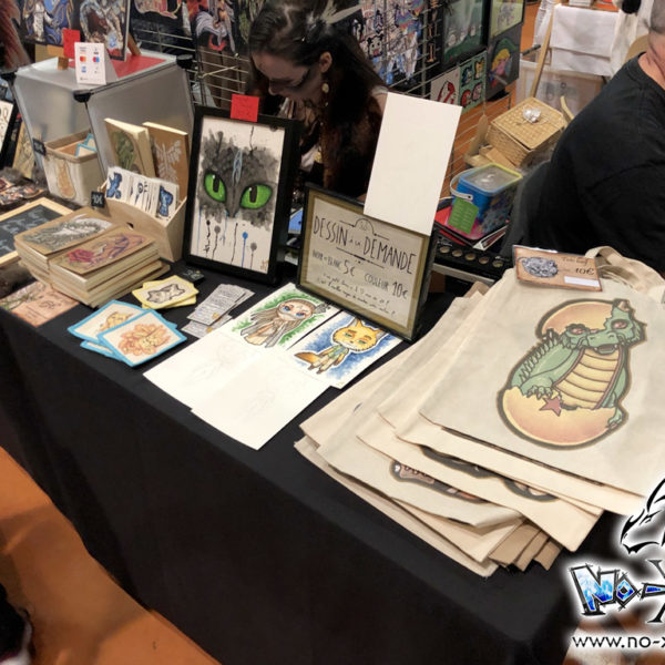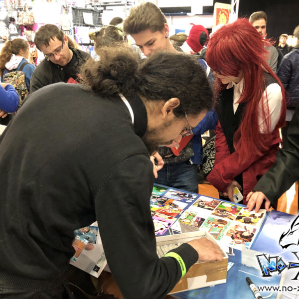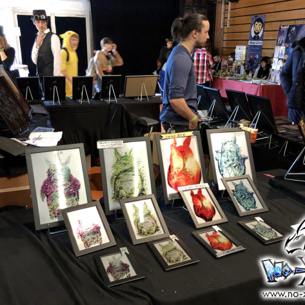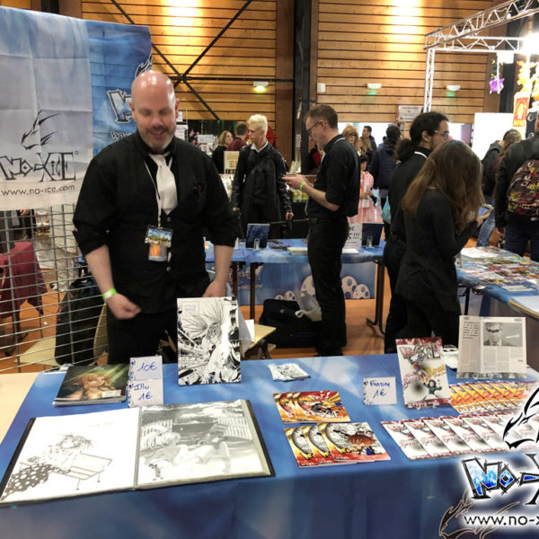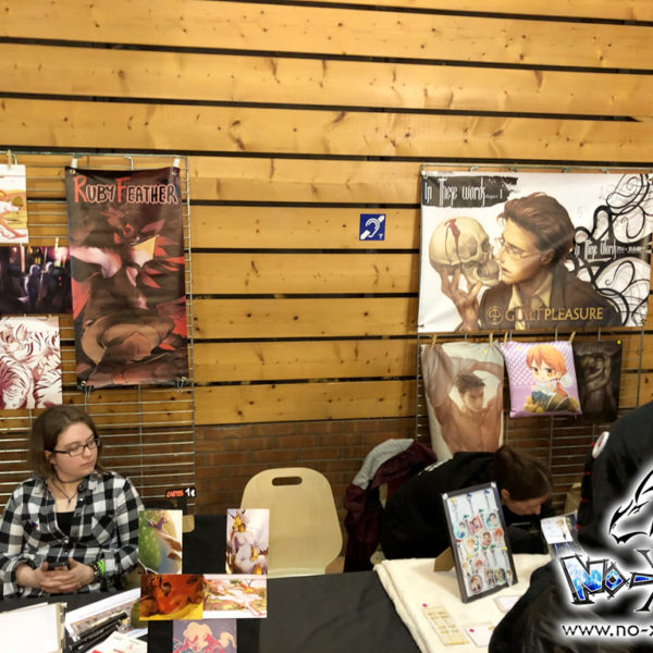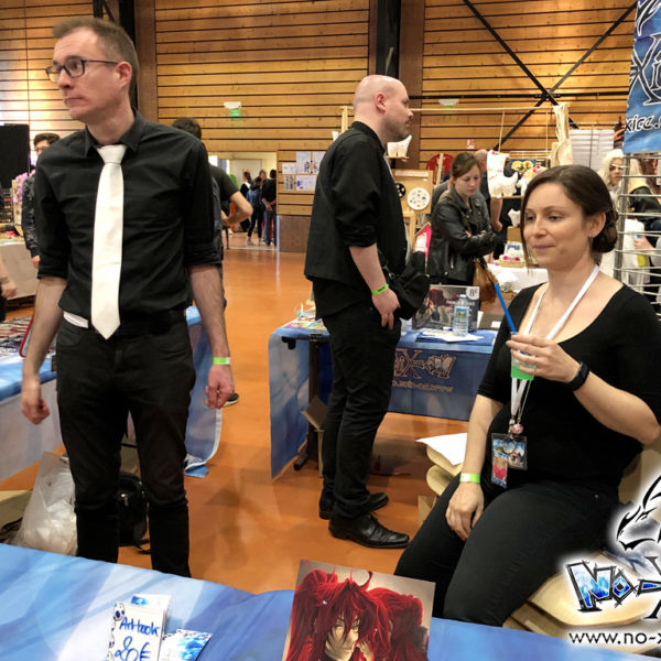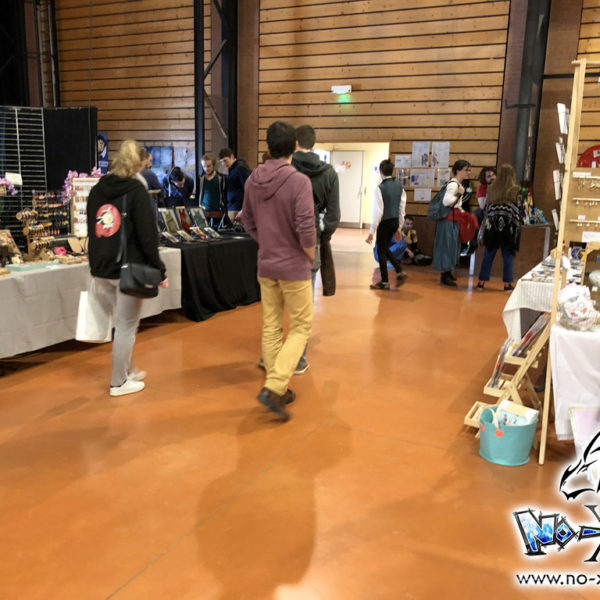Cinq No-Xiciens étaient présents derrière le stand : San Lee, Kronk, Cheloux, Tsuki Hyouka et Zork, et mah tiLd’ qui est venue squatter le stand les deux jours. En plus de cela, il y avait à côté de nous sur le stand The Dreamcatchers Ayleen, Elairin et Ozz. Devant la scène, Evhell, et les boutiques nantaises connues en plein cœur du salon, comme Japanim ou Le Temple du Jeu. Cette année encore, nous étions partenaires, et avions un stand particulièrement bien placé, en plein milieu de la convention. Vous avez pu découvrir notre nouveau artbook au format A3 sur notre stand, ainsi que les deux mangas d’Elairin qui ont très bien marché !