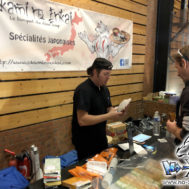 Nous sommes donc arrivés à l’heure, et avons attendu un peu des grilles, car il y a eu un petit souci vis-à-vis de ça puisque la mairie n’en avait donné que 60 au lieu des 70 prévues. Cependant, le problème s’est résolu assez vite, et les staffs de JapaNantes ont été plutôt efficaces. En attendant, les staffs distribuaient le petit déjeuner aux stands : brioche et café ! Les staffs ont également pris les commandes pour les repas du midi et les ont directement apporté à chaque stand à l’heure du déjeuner, et ce les deux jours. Même si nous avons émis quelques critiques sur la nourriture du 1er jour ; JapaNantes nous a proposé des sandwich le 2nd jour, et cela nous a très bien convenu.