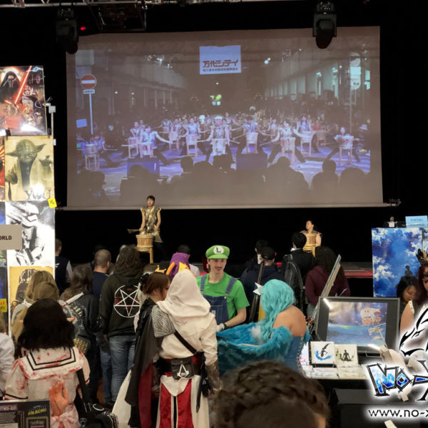 La convention en elle-même était très classique, mais très bien organisée et le placement des stands favorisaient la circulation. Bien qu’il y ait eu quelques soucis avec les stands en bord de scène et contre les murs qui manquaient un peu de lumière. Dans l’ensemble, c’est une belle réussite d’organisation, et il n’y a eu quasiment aucun problème ; aucun visible du grand public en tout cas. Les stands pro et amateurs étaient mélangés, ce qui est un excellent point. Dans deux salles annexes : karaoke et jeux musicaux, et dans l’autre les associations d’animation et les jeux vidéo. Un bon dispatch des activités bruyantes, à l’abri du bruit de la scène.