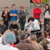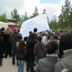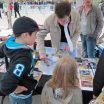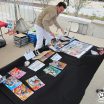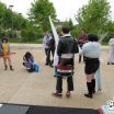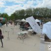 La matinée a été plutôt… Mouvementée ! Puisqu’en plus du vent qui se levait, nous avons eu le droit a une belle giboulée qui a trempé l’intégralité d’une de nos table, nous obligeant à retirer les illustrations de la vente, qu’on a vite remplacé par des champignons trouvés dans le coin ! Japon Facile a eu moins de chance puisque leur expo a été littéralement ravagée par la pluie : ils ont dû la retirer et n’ont pas pu la remettre malheureusement. La convention a commencé assez mollement, surtout avec la pluie qui a fait fuir les gens. Cependant, à partir du début d’après-midi, les acheteurs étaient survoltés ! Nous n’avons quasiment pas levé le nez et les ventes ont été continues jus’à la fin d’après-midi ! Incroyable ! Pour notre part donc, un excellent salon niveau vente ; de ce côté-là, et pour beaucoup d’exposants, ce salon a été une réussite. Malheureusement, beaucoup de problèmes sont venus ternir le tableau, mais sans que cela n’impacte les exposants.