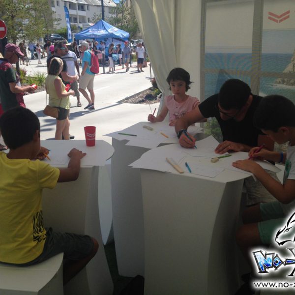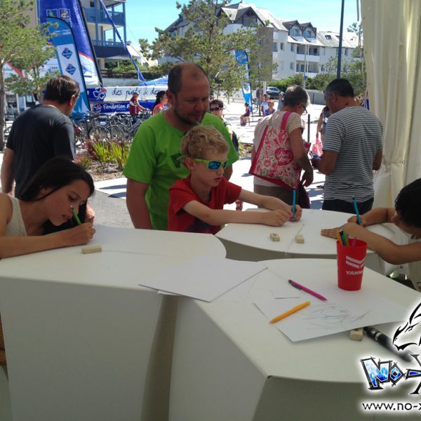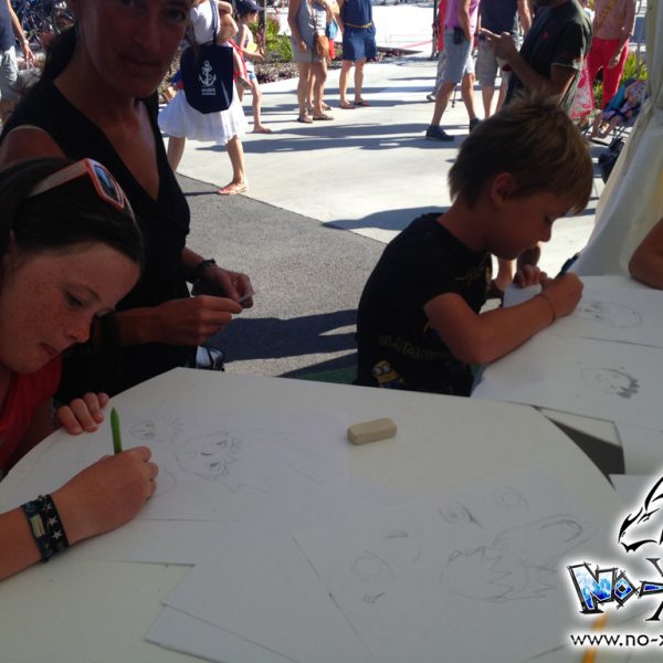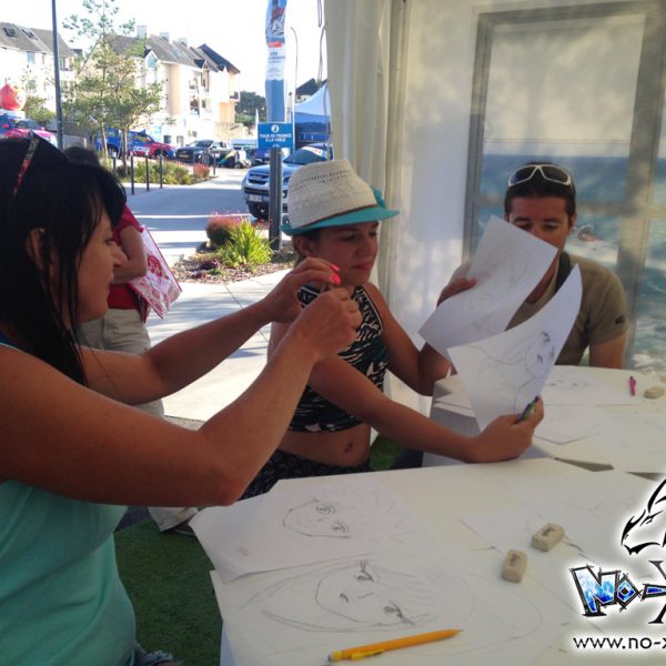 Atelier manga dans un contexte particulier, puisque nous avons été contacté par Kotoji Éditions pour animer un atelier de dessin manga ouvert lors des étapes du Tour de France à la voile, sur les communes d’Arzon (56), et aux Sables d’Olonne (85).