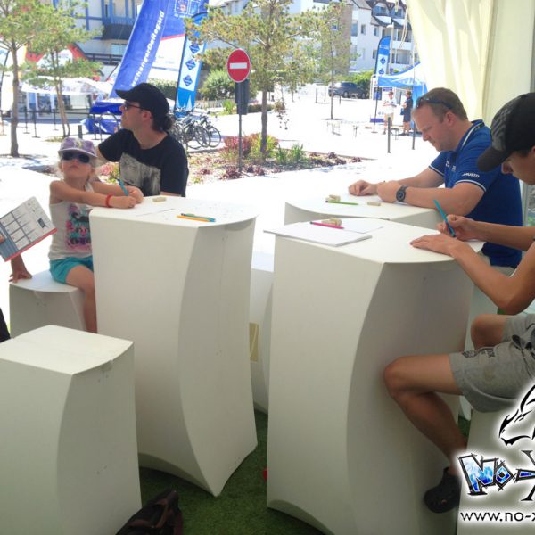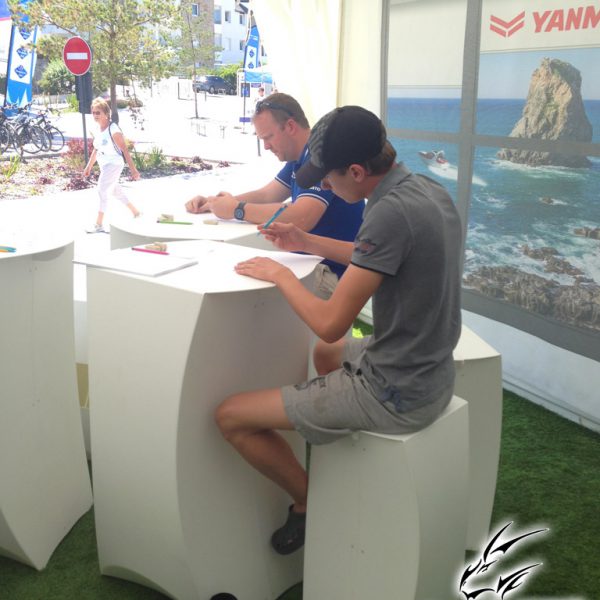 C’est donc au port du Crouesty à Arzon que nous avons fait notre première session. L’atelier se déroulait sur 2 jours, avec un format ouvert : les gens arrivaient et repartaient quand il le souhaitait. Il se déroulait dans le stand Yanmar, sponsor principal de l’évènement. C’est San Lee qui a réalisé les ateliers pendant ces 4 jours.