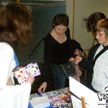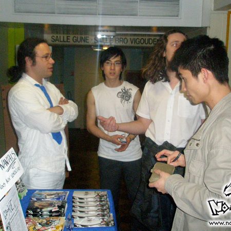 Ce cinquième Mangacity s’est révélé être une excellente édition, classique, mais avec d’excellents stands, comme le fanzine T@tsu de Paris, Méluzine, Caldeira Studio, le stand Harui, nos voisins, bruyants mais sympathiques… Pour les stands pro, ils étaient malheureusement tous mis à l’étage, ce qui ne les favorisaient pas pour se démarquer les uns des autres. Les différentes activités étaient réparties dans toutes la convention, dans différentes salles ; cependant, on commence à sentir les limites du lieu par la taille, les stands amateurs ne pouvant disposer que d’un stand simple. On notera d’ailleurs pour cette édition l’absence des fanzines Eclectik et La tête dans les nétoiles, qui, bien qu’étant rennais, ne sont pas venus… Pour le reste, le cosplay a eu du succès cette année, et les cosplayers étaient nettement plus nombreux qu’aux autres éditions. Le concert de Lamia Cross n’a cependant pas eu le succès escompté, même si des fans sont venus de loin (Bordeaux, Caen…). Quoiqu’il en soit, ce fut tout de même une excellente édition de Mangacity, le seul reproche étant que les stands et les activités ne se renouvellent pas assez, donnant l’impression que la convention évolue assez peu chaque année. Pour la note, c’est un 6 qui tend fortement vers le 7, Mangacity commence à se rapprocher d’un Anim’Est, sans encore l’égaler (ce qui explique ce 6, je ne veux pas mettre de demi-point !). En tout cas, nous attendons la sixième édition avec impatience ! Remerciements à Kisa, Pandora, au fanzine T@tsu, au stand des Haruhistes, à JR et Lliane, et aux staffs Knox et Arti, ainsi qu’à tous les nantais qui ont répondu à notre petite annonce sur notre stand !