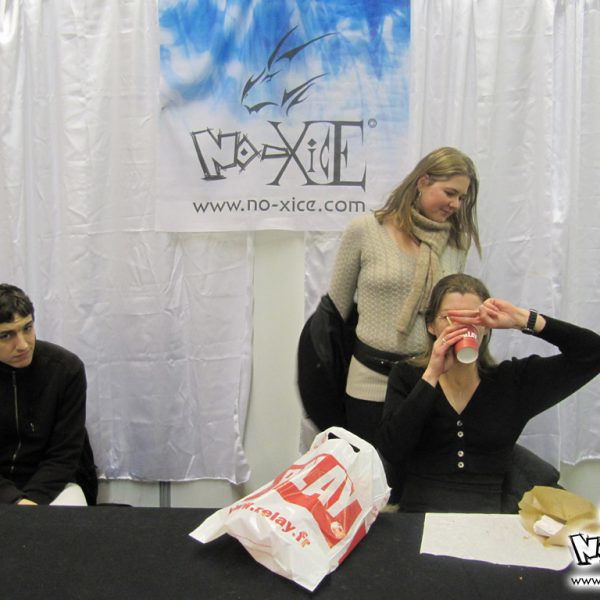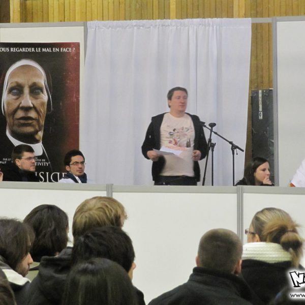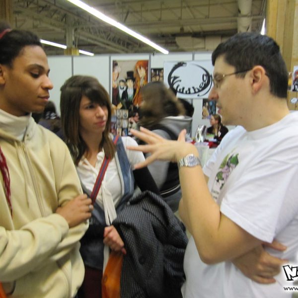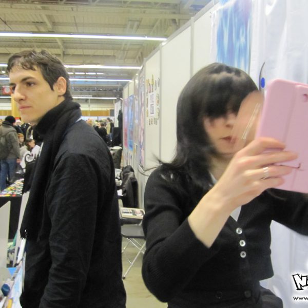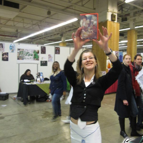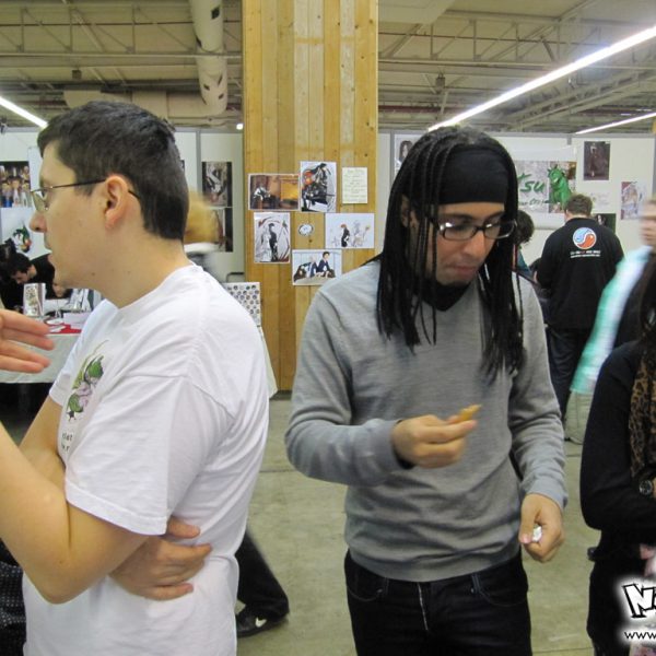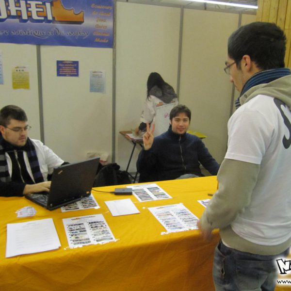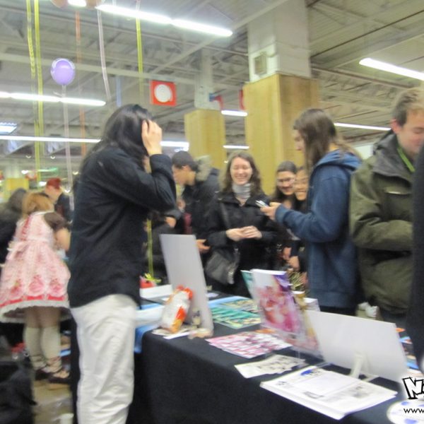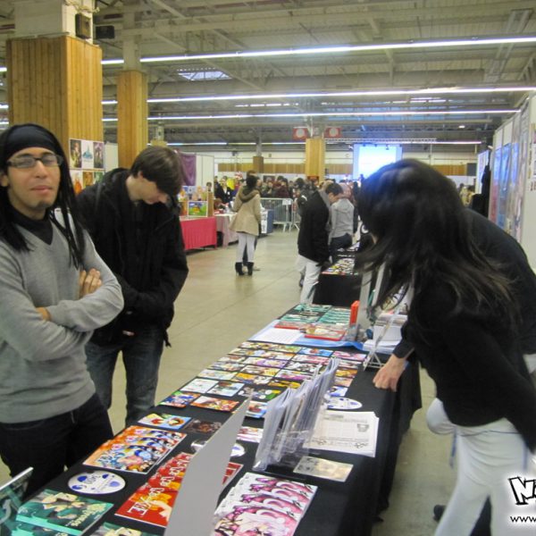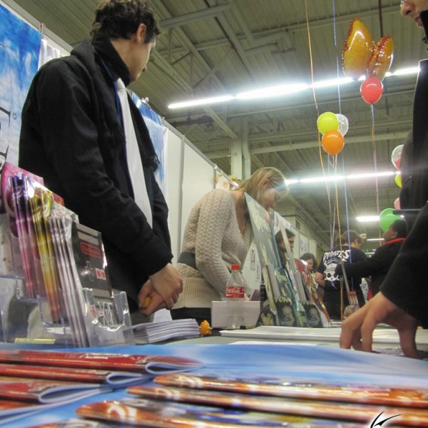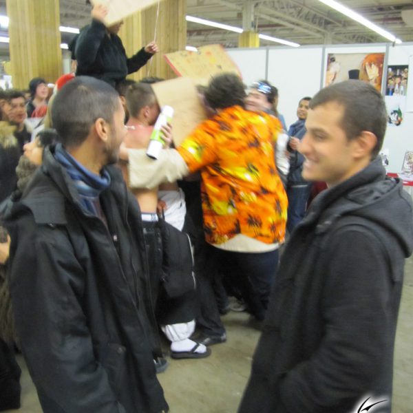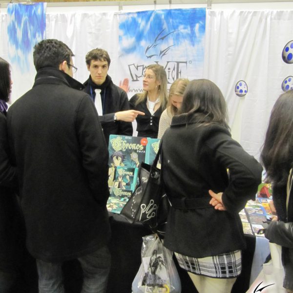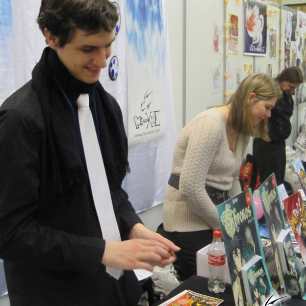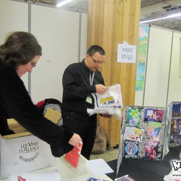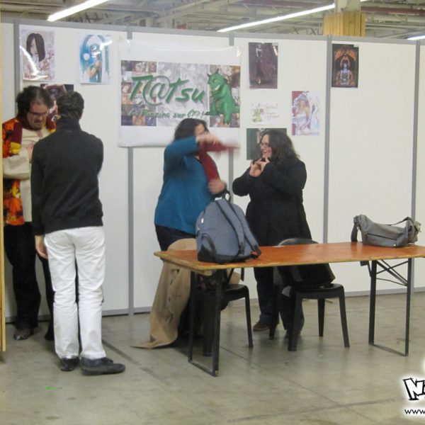 Malheureusement, le samedi fut une journée désastreuse : la pire journée du Paris Manga qu’on ait connu ! Des gens mous, peureux, qui n’osaient pas s’approcher du stand, et qui n’osaient pas parler ! On a rarement vu un public aussi “parisien” ! Quel contraste avec l’édition d’octobre 2011 ! Le dimanche quant à lui s’est fait sous la neige ! Et il a été largement meilleur, les gens étaient beaucoup plus avenants et participatifs (et on semblait leur faire moins peur…).