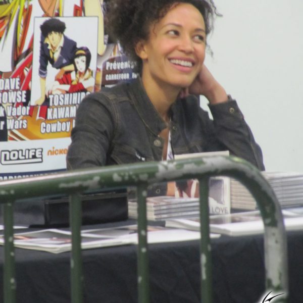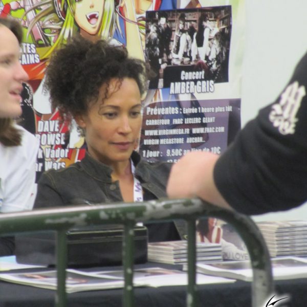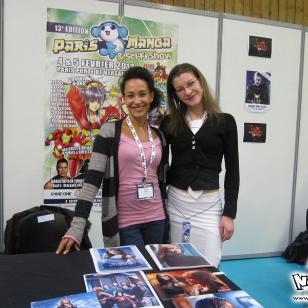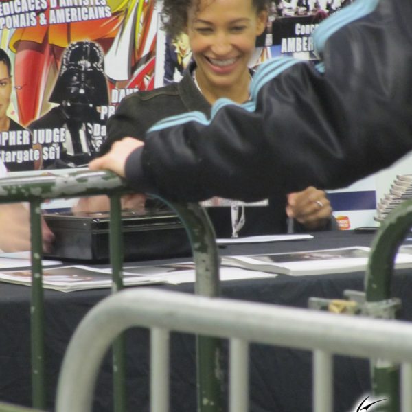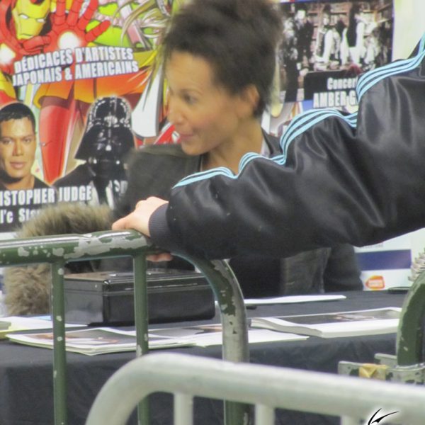 Au niveau des stands pro, du grand classique : mangas, sabres, vêtements, etc etc… Rien de nouveau donc ; on ne détaillera pas cette partie vu qu’on a passé assez peu de temps dedans au final… Niveau invités principaux, le retour de Christopher Judge (Teal’c dans Stargate SG1), et la présence de Rachel Luttrell (Teyla dans Stargate Atlantis), avec ses cheveux au naturel ! Ça change de la série (cf. photo plus bas) ! En tout cas, l’actrice est très sympathique !