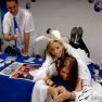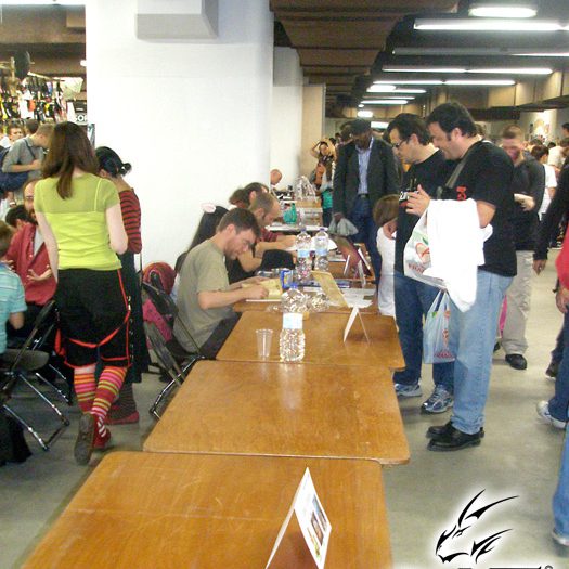 Cette huitième édition du Paris Manga a été une excellente édition ; la meilleure qu’on ait faite même ! Malgré le grand nombre de visiteurs, les salles étaient moins étouffantes et on circulait mieux, sans doute parce que les gens étaient également dehors dans la cour. Au niveau des stands, de tout, avec comme d’habitudes, une énorme prédominance des boutiques, qui fait que cette convention est super-commerciale. Les visiteurs du Paris Manga étaient fidèles à eux-mêmes : mous, mais moins qu’aux autres éditions ; en tout cas, nous avons fait des rencontres intéressantes, notamment au niveau des stands amateurs. Nouveauté : le Paris Manga se lance dans le même créneau que le Japan Expo avec une partie science-fiction ! Bonjour l’originalité ! Cette partie comportait quelques stands de vente, et la majeure partie était consacrée aux tables pour les dédicaces d’auteurs.