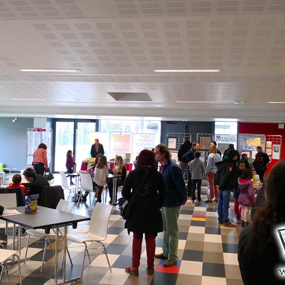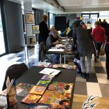 L’ambiance était particulièrement conviviale puisque nous étions invités, avant l’ouverture, à un apéritif suivi d’un repas entre exposants et organisateurs. Un bon moment, qui a un peu trainé puisque nous sommes sortis de table à 13h15 alors que le salon ouvrait à 13h !! Heureusement, les gens ne sont pas arrivés avant 14h !