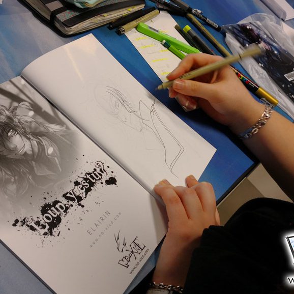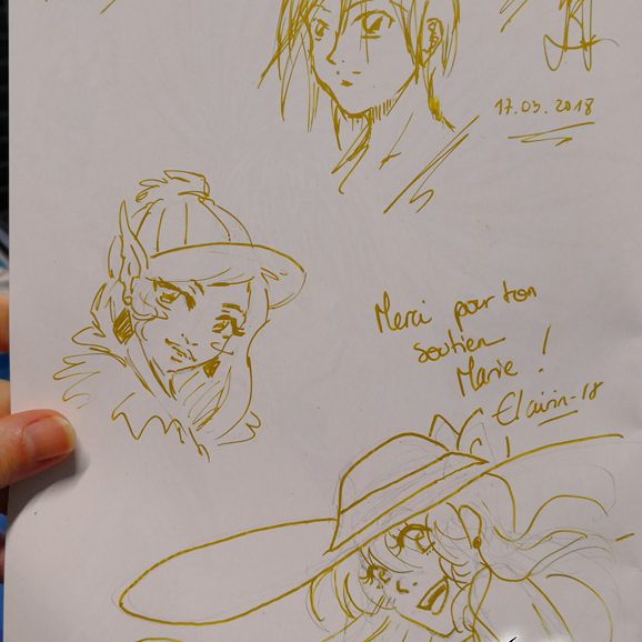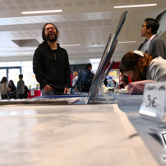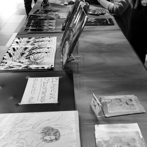 Pour les expositions, il s’agissait de nos illustrations, ainsi que des dessins des participants aux ateliers de toute la semaine ! C’était plutôt impressionnant de voir tous ces dessins réunis, ça représente une sacrée quantité !