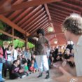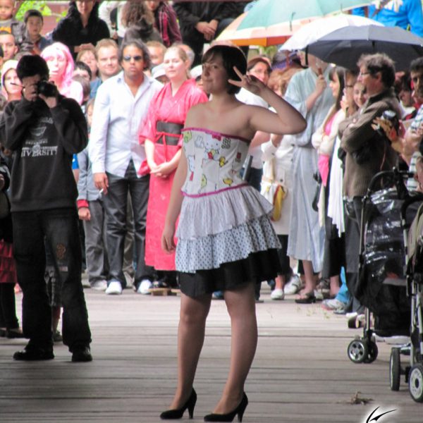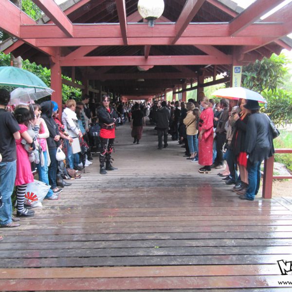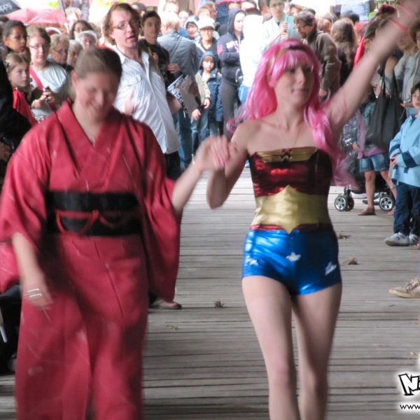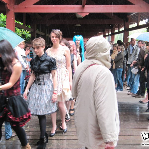 Pour le reste, le samedi a été une journée très agréable : beaucoup de monde et un beau soleil. Le dimanche a été quant à lui excécrable : très peu de monde, et à 16h, alors que devait débuter des défilés et le cosplay sur la scène principale (extérieure), il s’est mis à pleuvoir ; pluie qui ne s’est au final pas arrêtée. Les animations ont donc été déplacées sous le patio de l’entrée, tout en longueur, obligeant à bouger la sono (qui n’a pas apprécié). Autant, pour les défilés, la structure du lieu a été plutôt pratique, même si le public avait un peu de mal à tenir sur les côtés, autant pour le cosplay, pas du tout !