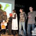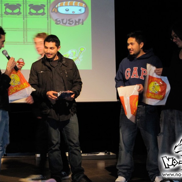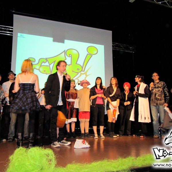 Au niveau prestation scénique, beaucoup de cafouillage, entre les problèmes techniques et le manque d’enchaînement des animations, et ce tout le long de la journée. Un peu déçu donc, avec beaucoup de meublage et beaucoup trop de 1, 2, 3 sentai. Les jeux musicaux ont été quant à eux mis dans une salle à part ; de bons et de mauvais points. Il n’y a plus de problèmes de son avec la scène, ce qui est appréciable, mais comme toute petite salle où l’on met du DDR, la chaleur monte rapidement. Au niveau jeux vidéo, du bon avec Tekken 6 et Street Fighter 4 ; de la variété entre les consoles et une disposition qui permettait une bonne accessibilité. Le bar quant à lui a été comme à son habitude, c’est-à-dire quasi-parfait, aucun problème de ce côté-là, si ce n’est le tarif des canettes excessif (1,50 € !). Autre nouveauté (retour plutôt) : le cosplay ! Très sympathique, avec un peu plus d’une dizaine de participants, ce qui est un excellent résultat pour Nantes. Au total, une trentaine de cosplayers, tous n’ayant pas participé au concours, mais c’est encourageant et le retour du cosplay a été une très bonne initiative de la part de Wazabi. Les défilés ont été également plutôt réussi, et les shows PPP aussi.