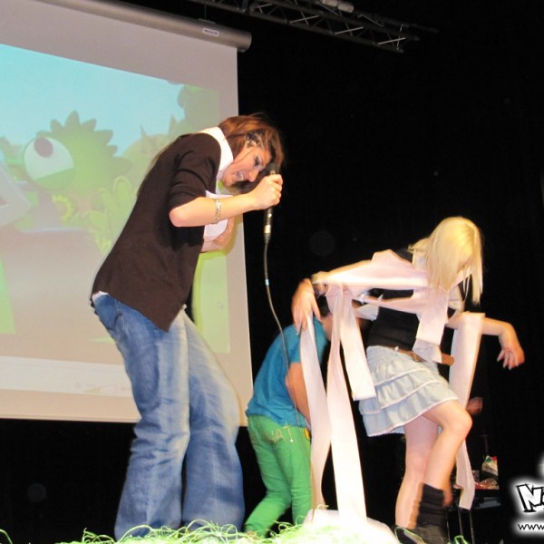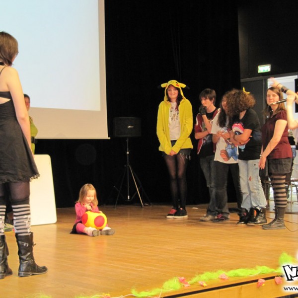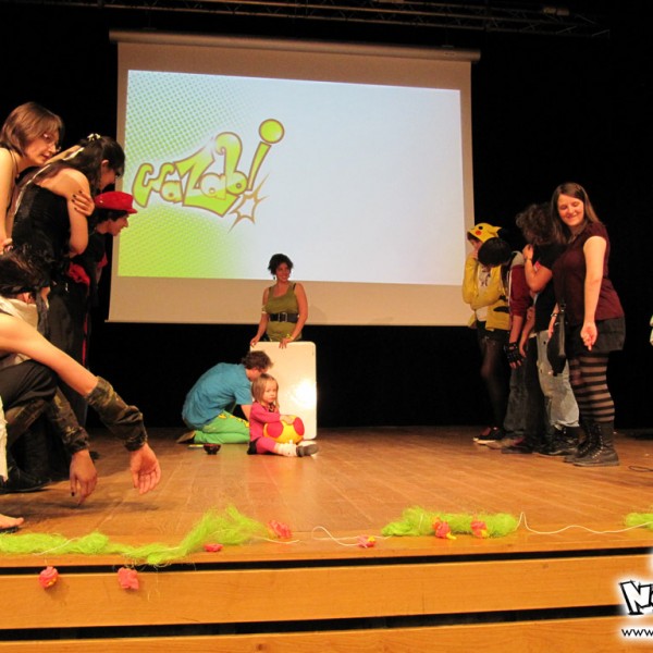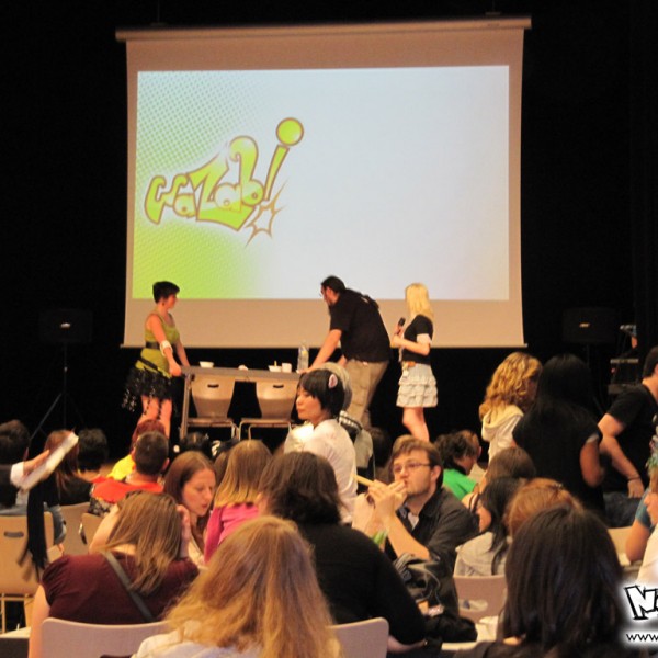 Le jeu fil rouge de cette édition était par contre très intéressant, puisqu’il s’agissait d’un mini-rpg avec la nouvelle mascotte de Wazabi : Fraiziby. Une petite vidéo a été diffusée au début de l’après-midi la mettant en scène et se faisant kidnapper ; le but du jeu étant de la retrouver. Une bonne idée donc, dommage que le jeu était un peu compliqué quand même… Pour le reste des animations, on retrouvait le Find or Mange une fraise Wazabi, le Sushi Quizz, 1 2 3 sentai, le concours de ramen, etc… Rien de nouveau de ce côté-là. Bizunours, présentateur vedette de Wazabi a assuré une bonne partie des jeux, et s’est fait épaulé par Maxilia et par Tass.