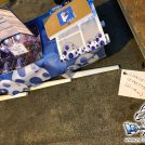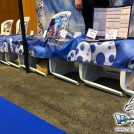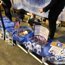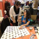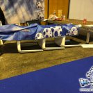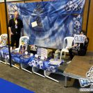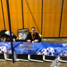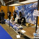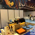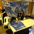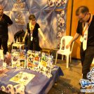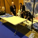 Et croyez-le ou pas, mais on commence à monter le stand, on “enfile” les chaises les unes après les autres, et on se marre ! Parce qu’honnêtement, la situation est tellement risible ! On hallucine un peu, on se dit “on va vraiment vendre avec un stand comme ça ?! On va avoir des ventes pourries !”, mais on rigole, parce que de toute façon, qu’on gueule ou pas, il n’y a pas de tables, ils ne vont pas en inventer (mais nous oui !) et la convention va ouvrir. Au final, ça installe une bonne ambiance de base, et on prend tout ça à la rigolade, en se disant que les ventes vont être nulles, mais qu’au moins on va bien se marrer ! On pose les nappes, les produits (bancales)… On a franchi les portes du salon à 10h. À 10h30, le “stand” est monté et opérationnel ! Et à 10h40, on a déjà vendu pour 70 € !!! Durant la journée, on a été félicité par d’autres stands de notre vitesse de réaction.