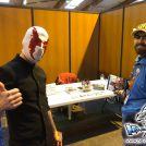À 10h tapante, nous franchissions donc les portes du Parc des Expos de Rennes. La convention devait ouvrir à 9h30 (mais nous avions prévenu que nous ne pourrions pas arriver avant 10h) ; nous sommes un peu surpris de voir les visiteurs encore bloqués devant la porte d’entrée… On entre un peu comme dans un moulin, peu de surveillance à l’entrée… Certains d’entre nous filent vers le stand, que l’on trouve sans difficulté, et là, LA surprise : on n’a pas de tables !