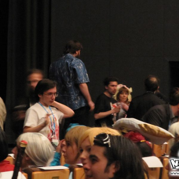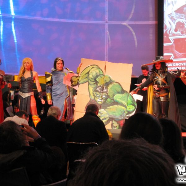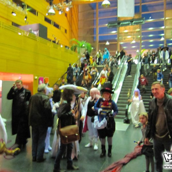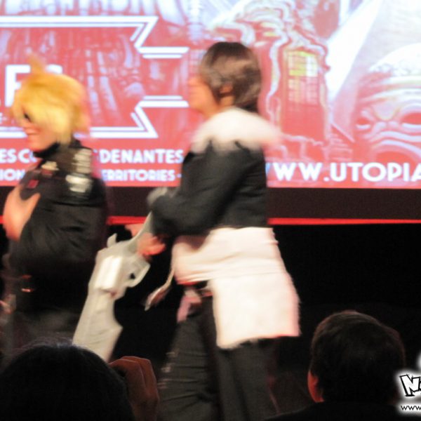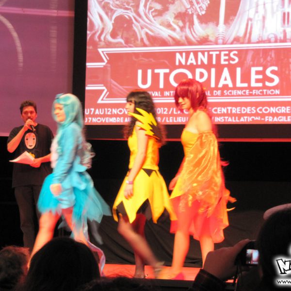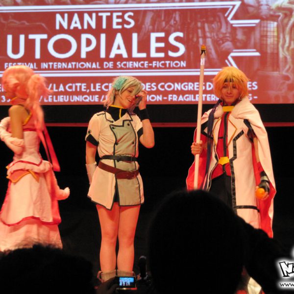 La quatrième journée des Utopiales est la journée consacrée au manga, appelée “journée manga-tan”, dont l’instigateur est Morgan Magnin. L’attraction-phare de ce dimanche a donc surtout été le cosplay, animé par la Brigade SOS Francophone. Plutôt de bon niveau pour les costumes, les prestations ont été très inégales : du très bien et du très mauvais. On notera le grand retour du cosplayer Papa Noël (cf. 4ème vidéo de la soirée Wazabi 5). Cette quatrième journée est particulière, puisque beaucoup de visiteurs fan de manga ne viennent que pour cette journée-là ; certains ne viennent même que pour le cosplay. Chose appréciable également : contrairement aux cosplayers parisiens, nous n’avons eu le droit qu’à un seul Gangnam Style ! Le niveau des prestations nantaises, depuis un an, a relativement progressé, et il est plus agréable et intéressant de voir un concours de cosplay à Nantes qu’à Paris (vu qu’ils ne savent faire que du Gangnam Style ces temps-ci…) !