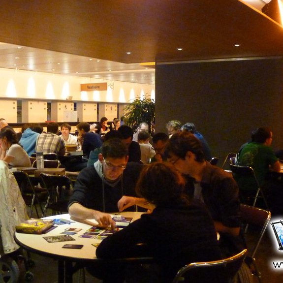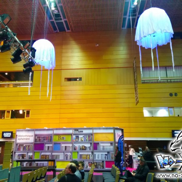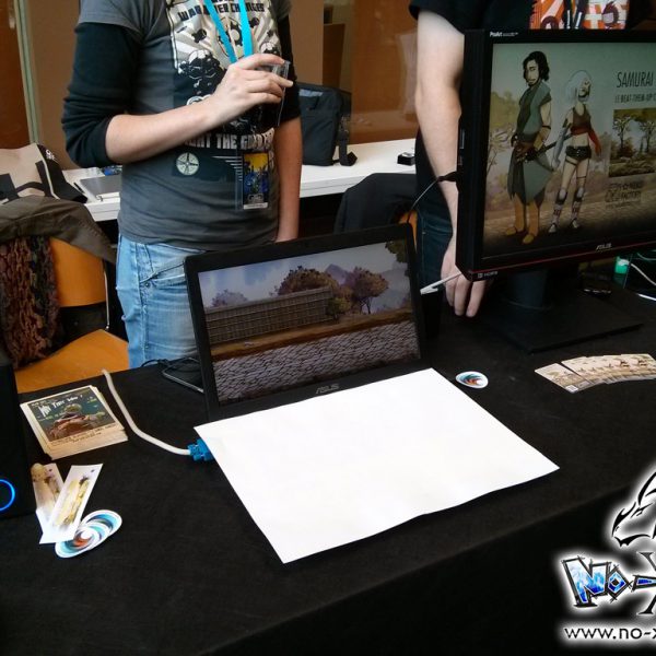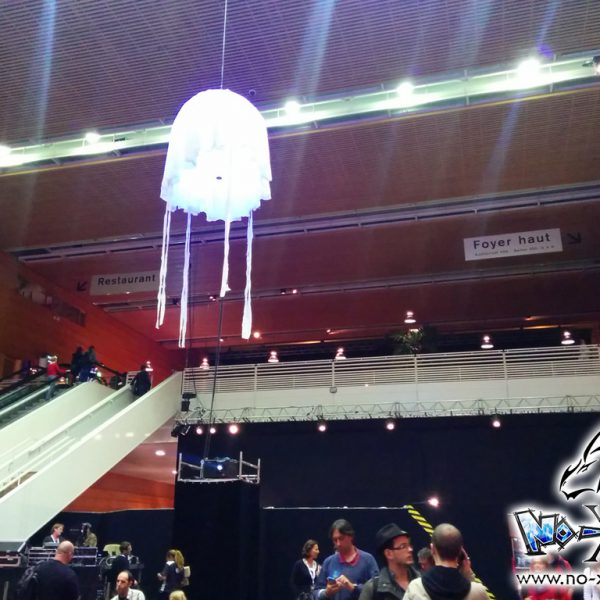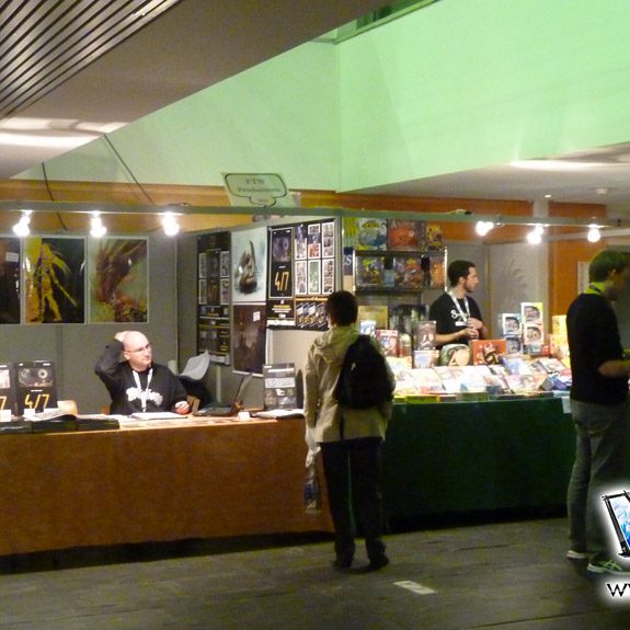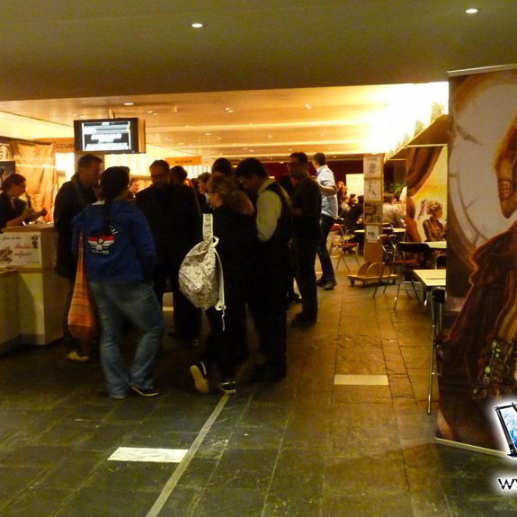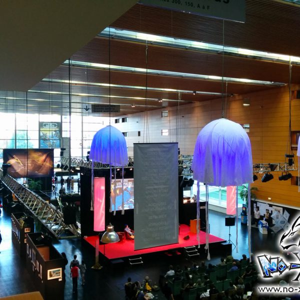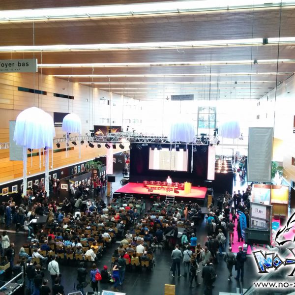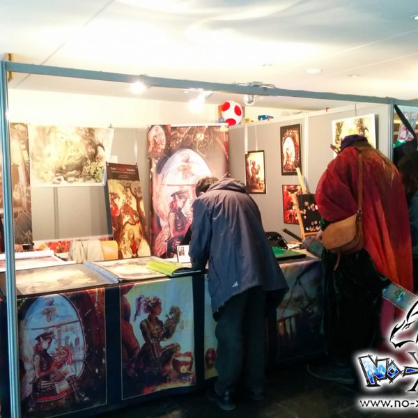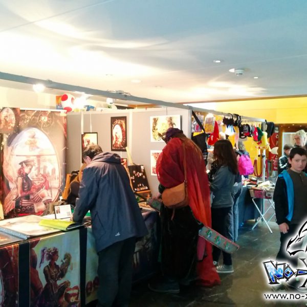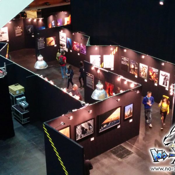 On a pu se balader parmi des expos avec de superbes illustrations, on regrette l’annulation de celle sur les robots. Il y avait un stand avec une démonstration de la supraconductivité, le CNES est revenu avec les images de la NASA à 360° et on a eu le droit à un espace pour les jeux vidéo indé, avec les équipes de développeurs pour nous présenter leur création (il y avait même un studio nantais). On pouvait aller boire un verre au bar en mezzanine ou aller jouer aux jeux de plateaux, de cartes ou autres jeux de rôle à l’espace inférieur qui est grand mais très mal insonorisé ; du coup, on attrape vite mal à la tête.